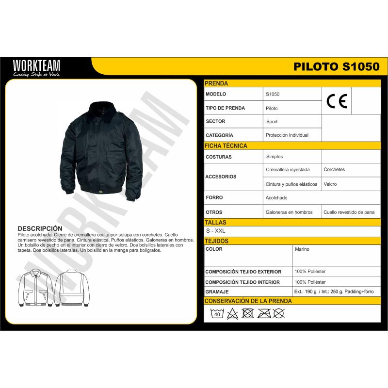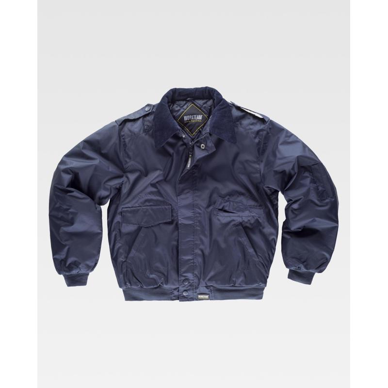 Piloto acolchada en tejido Oxford. Cuello camisero revestido en pana y cierre de cremallera oculta por solapa postiza con corchetes. Dos bolsos interiores con cartera en los costados. Dos bolsos laterales de ojal. Un bolso de pecho de plastón con cierre de velcro en el interior. Un bolsillo en la manga compartimentado. Galonera con corchete y refuerzo con pespunte a zigzag en los hombros. Pliegues y cortes decorativos en la espalda. Puños y cintura elásticos en punto canalé. 100% Poliéster