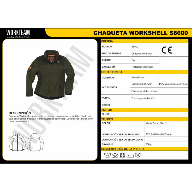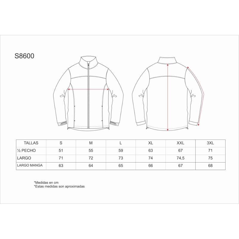 Chaqueta Workshell con canesús y costadillos a contraste. Cuello alto y cubrecosturas interior. Cierre de cremallera de nylon. Solapa protectora interior vuelta en la parte superior cubriendo la cremallera. Dos bolsos laterales interiores con cierre de cremallera de nylon. Bocamanga ajustable con velcro. Cremalleras de cierre invertido. Cordón elástico con pieza ajustable en el bajo. 96% Poliéster 4% Elastano