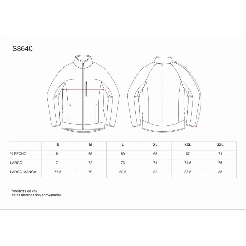 Chaqueta Workshell de verano con interior afelpado y manga ranglan con canesús. Cuello alto y cubrecosturas interior. Cierre de cremallera de nylon. Un bolso de pecho y dos laterales interiores con cierre de cremallera de nylon. Cuello, bocamanga y bajo con bies elástico. Cortes decorativos y cremalleras de cierre invertido. 100% Poliéster