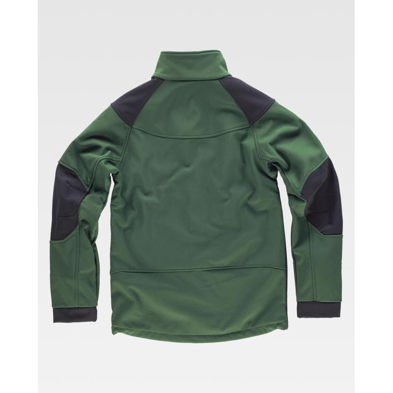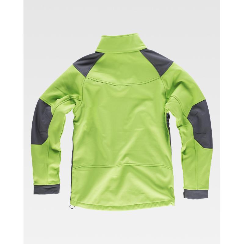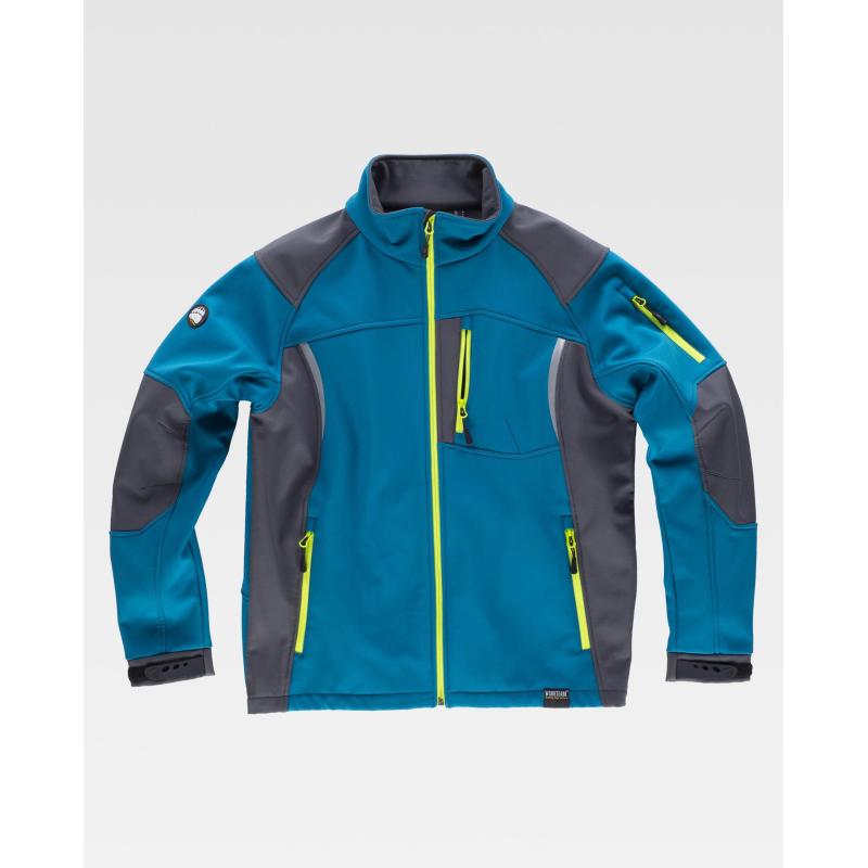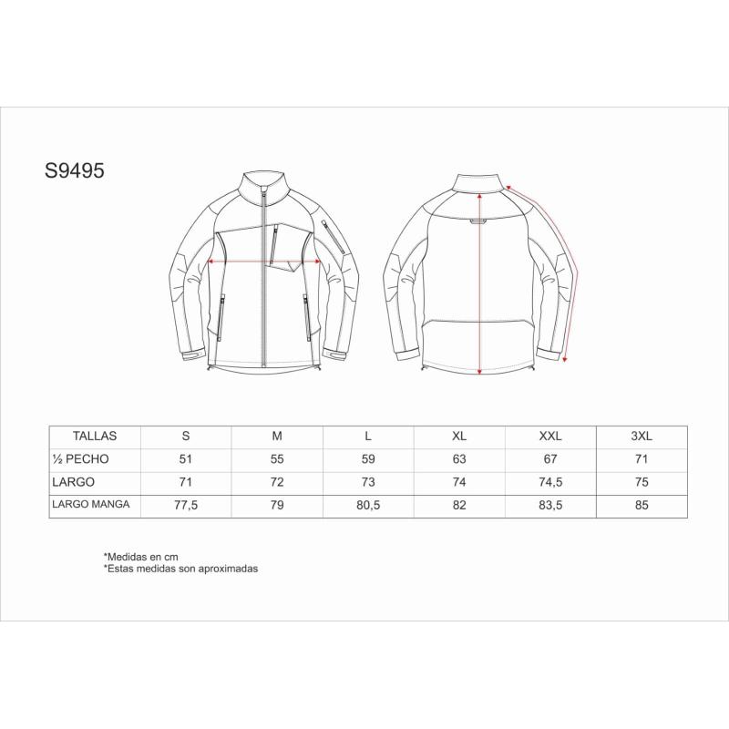 Chaqueta Workshell combinada de manga ranglan. Cuello alto y cierre de cremallera de nylon. Solapa protectora interior vuelta en la parte superior cubriendo la cremallera. Un bolso de pecho y dos bolsos laterales interiores con cierre de cremallera de nylon. Un bolsillo en la manga con cierre de cremallera. Puños ajustables con velcro. Cortes decorativos, detalles reflectantes y cremalleras a contraste de cierre invertido. Cordón elástico con pieza ajustable en el bajo. Tejido corta vientos, repelente al agua y resistente al desgarro con membrana interior transpirable y aislante e interior de alta capacidad térmica. Forro de rejilla en delantero. 96% Poliéster 4% Elastano