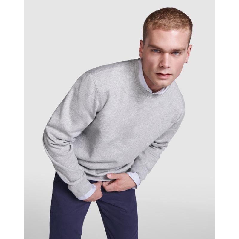 Sudadera unisex cuello redondo. Algodón orgánico peinado. Cuello, puños y cinturilla en canalé 2x1 con elastano. Todas las costuras remalladas. Media luna interior y cubrecosturas del mismo tejido. Certificado OCS y GRS.