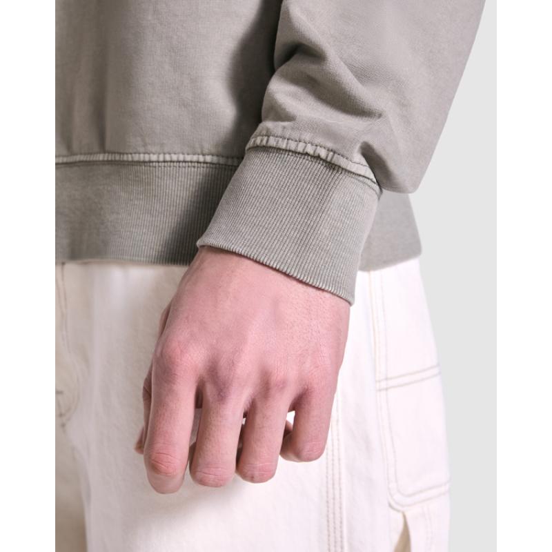 Sudadera unisex de algodón efecto lavado no perchado, cuello redondo. Cuello, puños y cinturilla en canalé 2x1 con elastano. Cubrecosturas del mismo tejido.