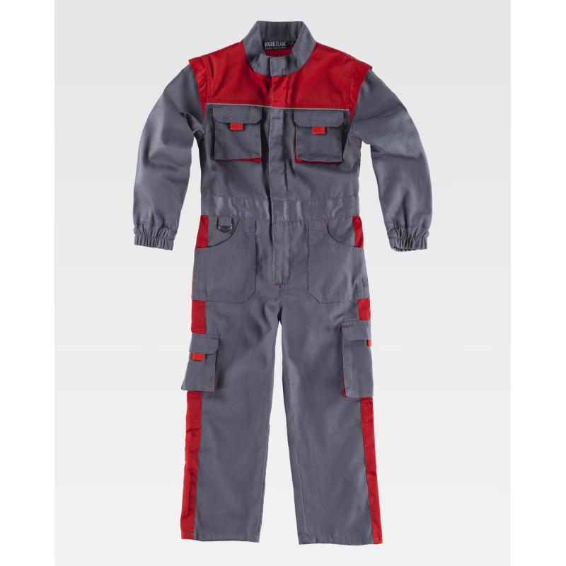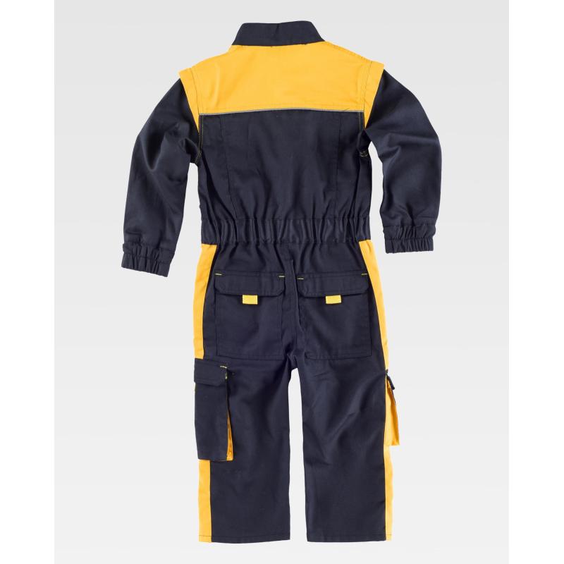 Buzo de niño, combinado con vivos reflectantes y presillas a contraste. Cuello alto y cierre de cremallera de nylon de doble tirador oculta por solapa. Velcro en cuello y solapa. Dos bolsos de pecho de fuelle con cartera de velcro y tiradores a contraste. Dos bolsos de plastón con abertura redonda en los costados. Dos bolsos laterales de fuelle de diferente tamaño con cartera de velcro y tiradores a contraste. Dos bolsos traseros de plastón con cartera de velcro y tiradores a contraste. Puño con elástico. Cinturilla con elástico en la espalda y argolla en delantero. 65%Poliéster 35% Algodón