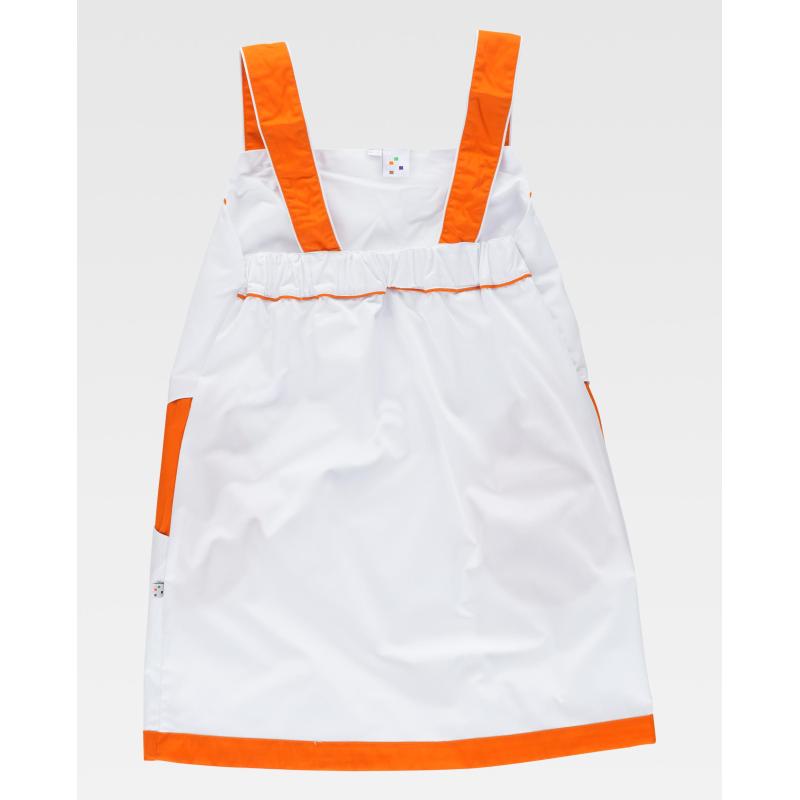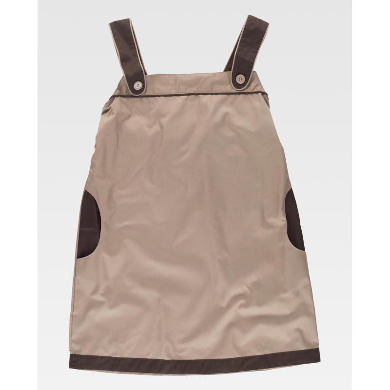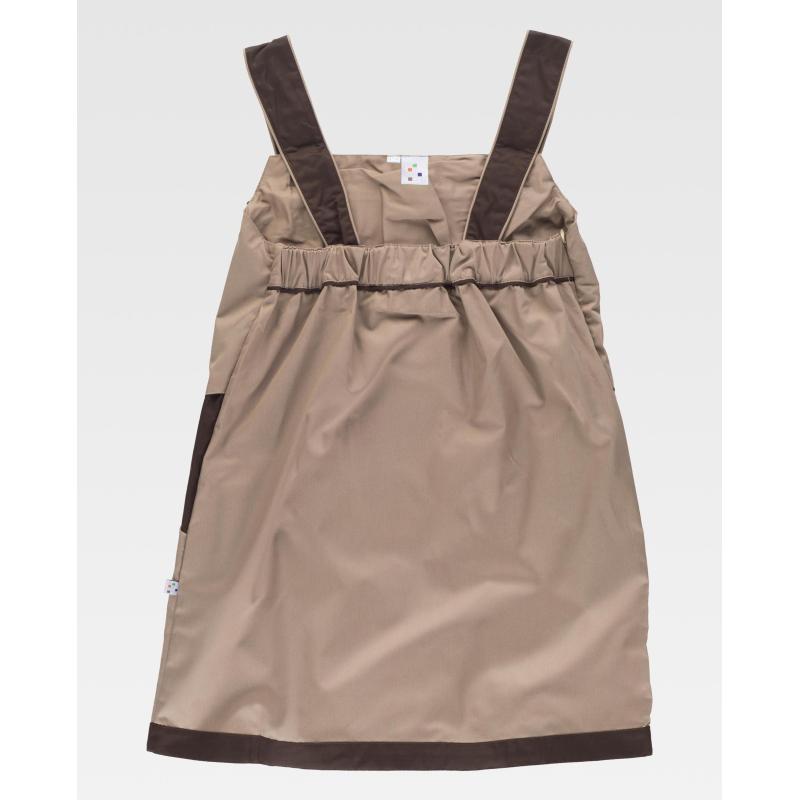 Pichi combinado con tirantes y canesú delantero rematados con vivo. Dos bolsos laterales interiores de abertura redonda. Tirantes, vistas de bolsillo, bajo y vivos a contraste. Cierre lateral de cremallera invisible y tirantes con botón. Elástico en la espalda. 65% Poliéster 35% Algodón