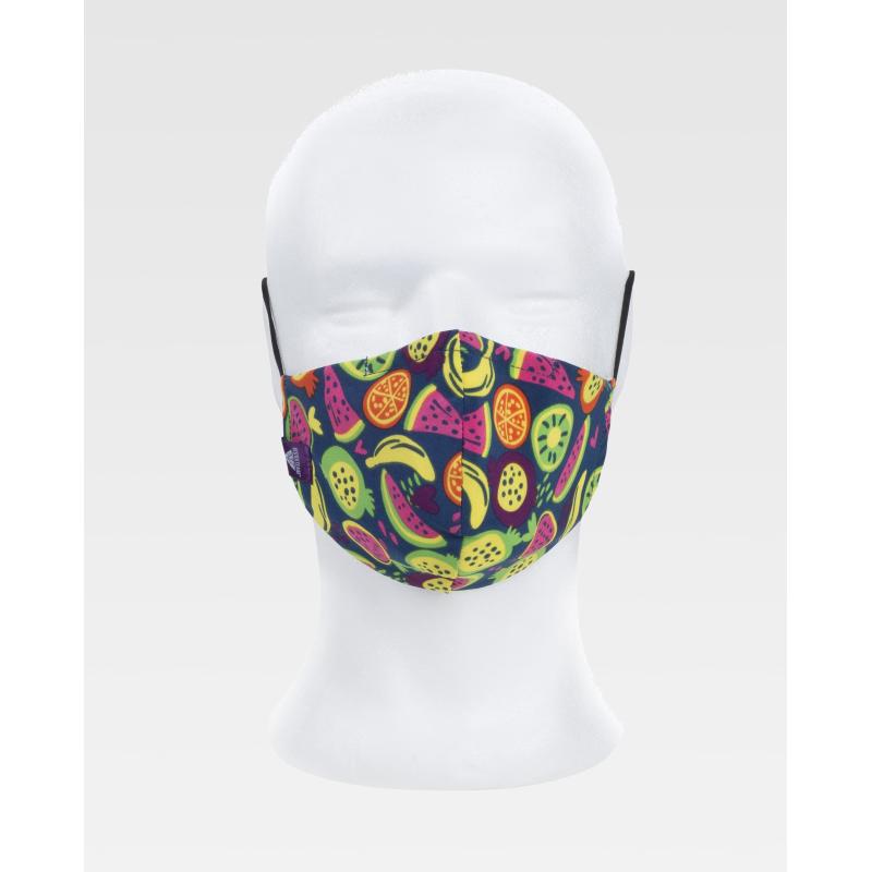 Mascarilla reutilizable de tejido elástico y estampado. Compartimento para filtro. Incluye dos filtros. 93% Poliéster 7% Elastano