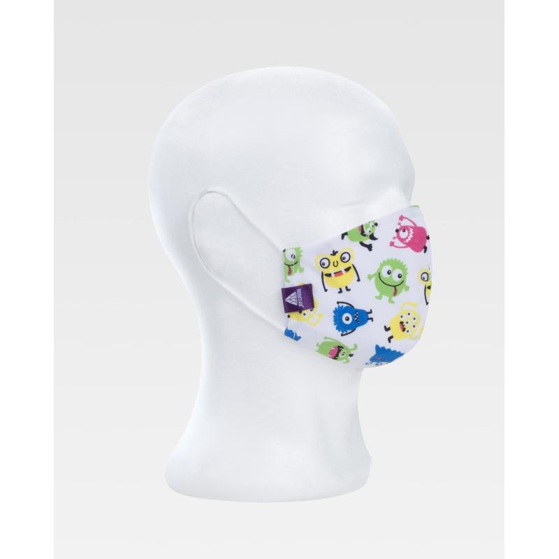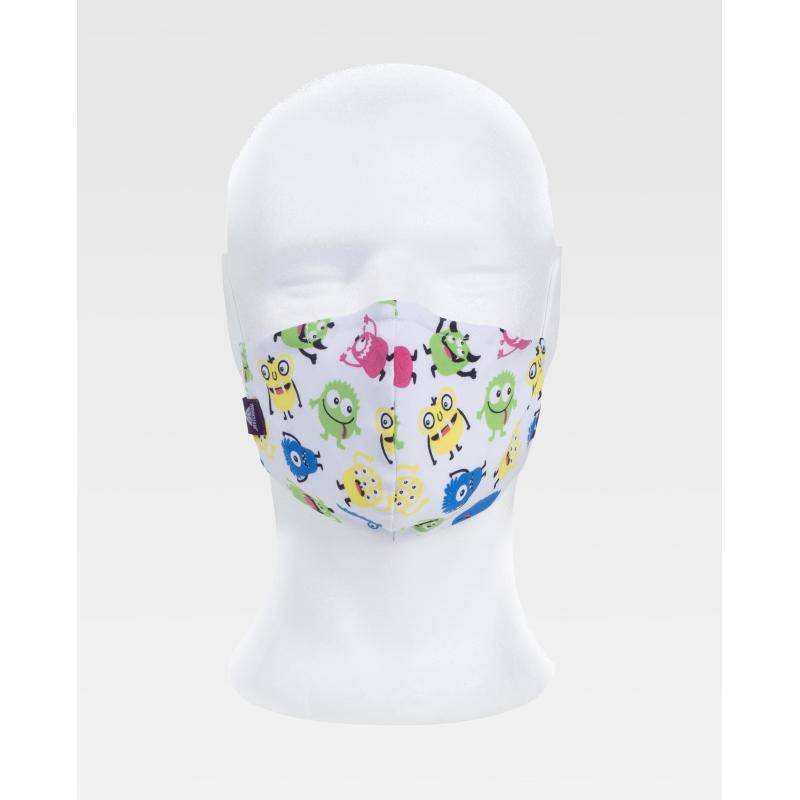 Mascarilla reutilizable de tejido elástico y estampado. Compartimento para filtro. Incluye dos filtros. 93% Poliéster 7% Elastano