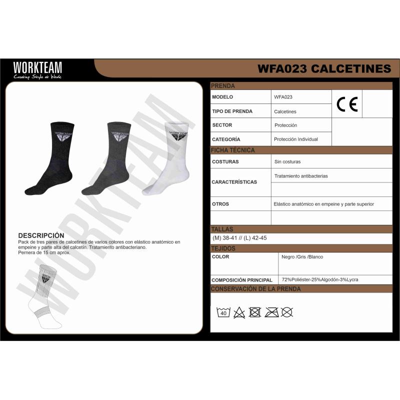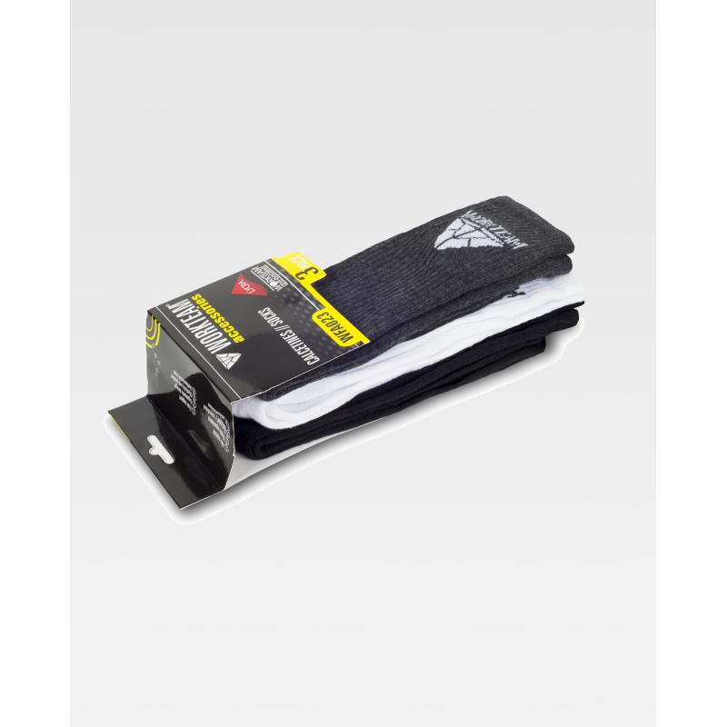 Pack de tres pares de calcetines de varios colores con elástico anatómico en empeine y parte alta del calcetín. Tratamiento antibacteriano. Pernera de 15 cm aprox. 72% Poliéster 25% Algodón 3% Lycra
