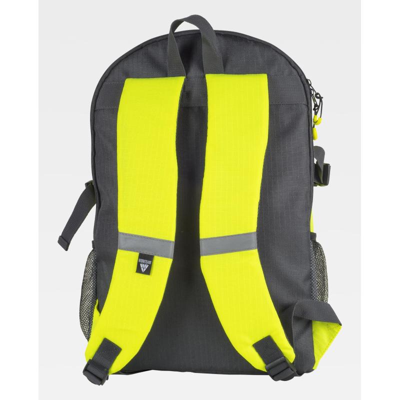 Mochila con tejido Ripstop combinada, con capacidad de 20l. Un compartimento antirrobo con cierre de cremallera de doble tirador para ordenador portátil. Un compartimento de gran capacidad con cierre de cremallera de doble tirador. Dos bolsillos frontales con cierre de cremallera. Dos compartimentos laterales de rejilla. Ajustes en los laterales y la parte baja. Goma elástica portaobjetos. Asa en la parte superior. Espalda acolchada. Detalles reflectantes. Poliéster