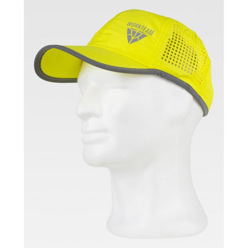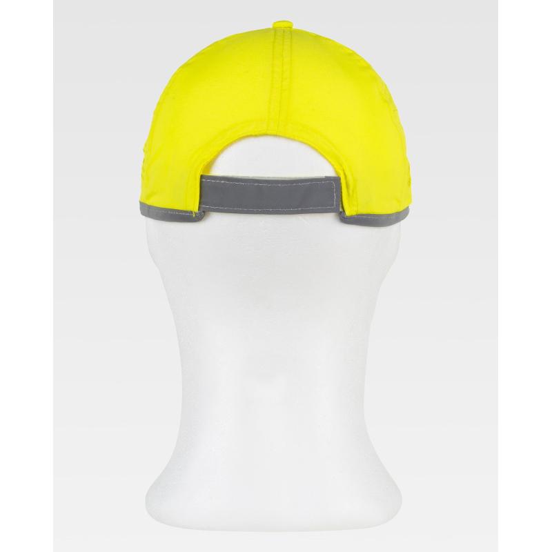 Gorra de alta visibilidad. Avanzado sistema de ventilación en los laterales. Logo reflectante en el frontal. Ajuste trasero con velcro. Bies reflectante. 100% Poliéster