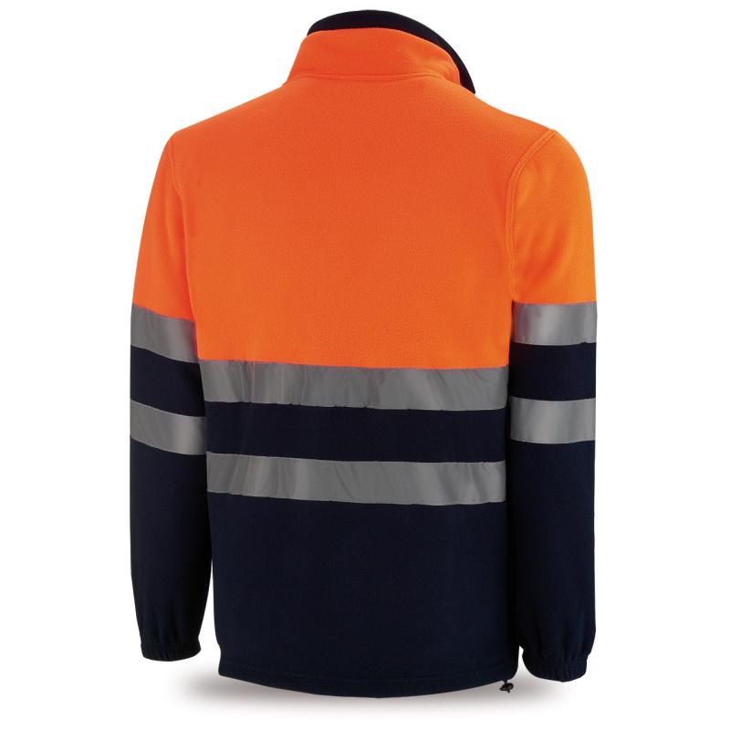Chaqueta polar bicolor con ajuste de puños mediante elástico, 2 bolsillos exteriores de boca vertical ubicados en el inferior de ambos delanteros y cierre de la prenda frontal vertical mediante cremallera en espiral de poliéster.
