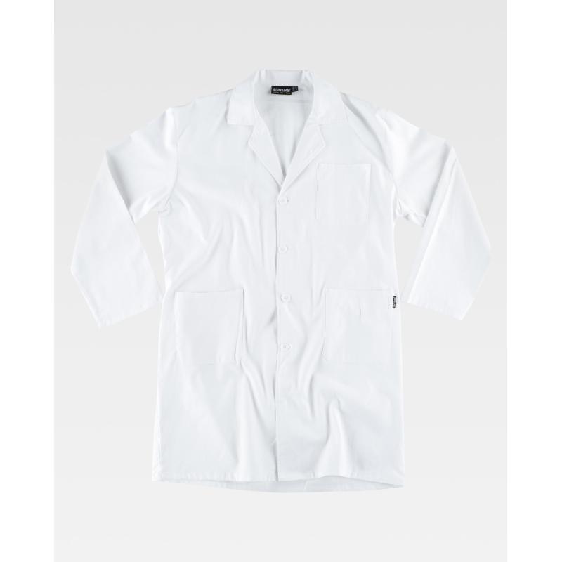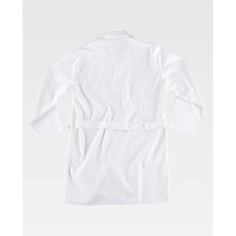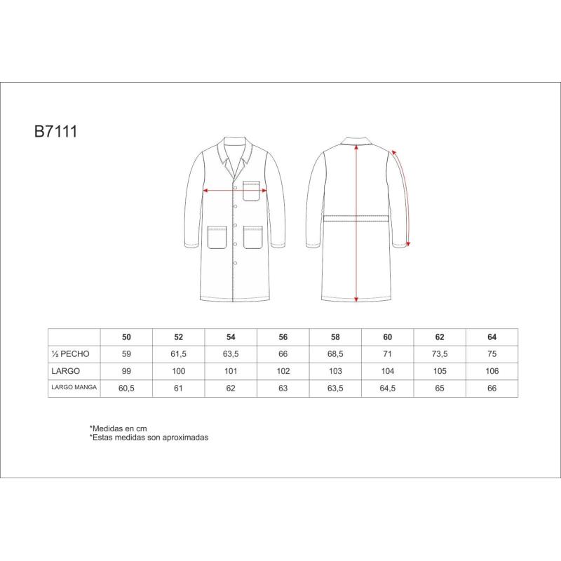 Bata de caballero en algodón. Cuello solapa y cierre central de cuatro botones. Un bolso de pecho y dos bolsos laterales de plastón. Manga larga. Cinto en la espalda. Ligera, hipoalergénica y de tacto suave. 100% Algodón