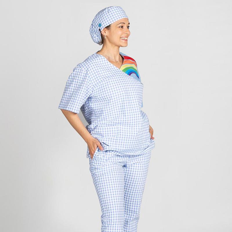 La manga corta proporciona comodidad durante las jornadas de trabajo, especialmente en climas cálidos. El cuello en pico agrega un toque de estilo y permite una mayor libertad de movimiento.