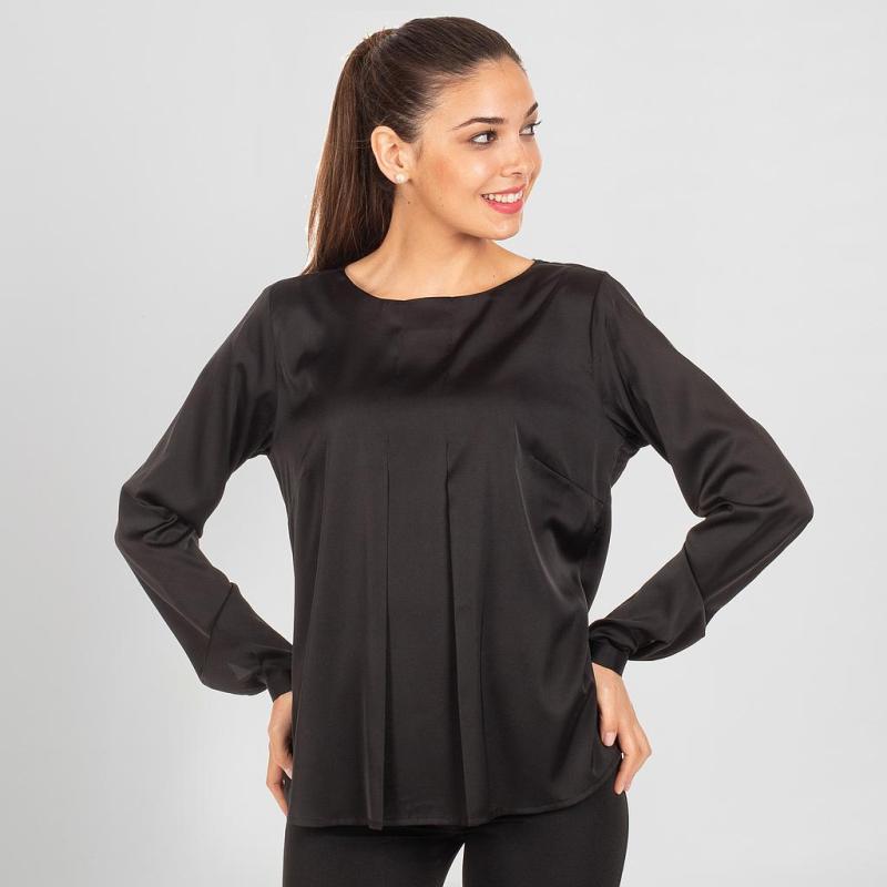 La BLUSA MUJER SATÉN TELMA fusiona elegancia y comodidad para profesionales en la hostelería y restauración. Confeccionada en SATÉN de 94% Poliéster - 6% Elastano, esta blusa de manga larga presenta un cuello redondo y dos tablas distintivas en el delantero, añadiendo un toque de estilo y refinamiento.