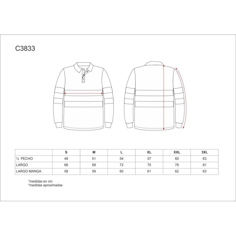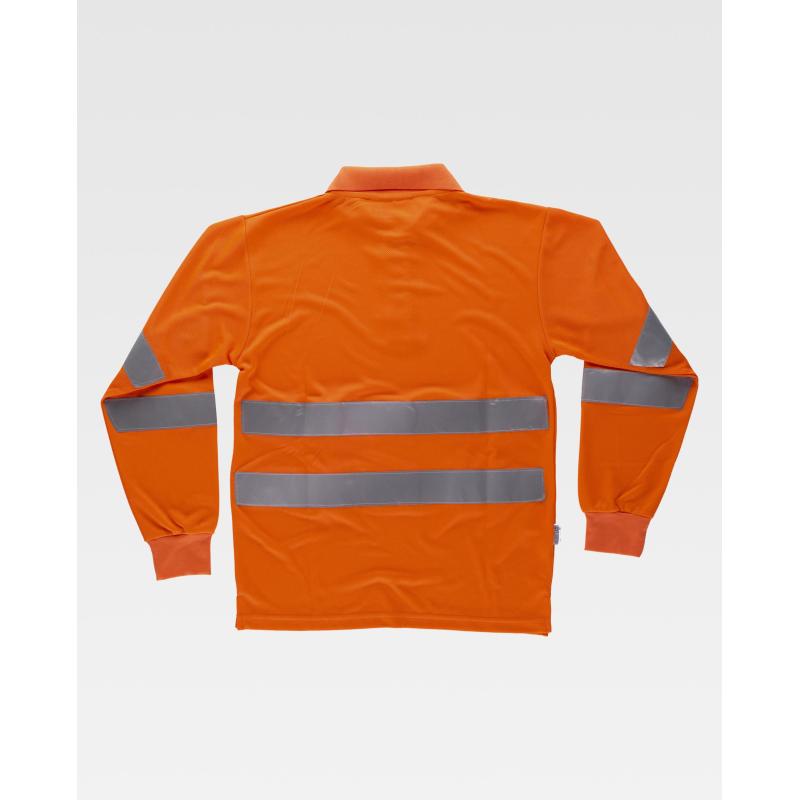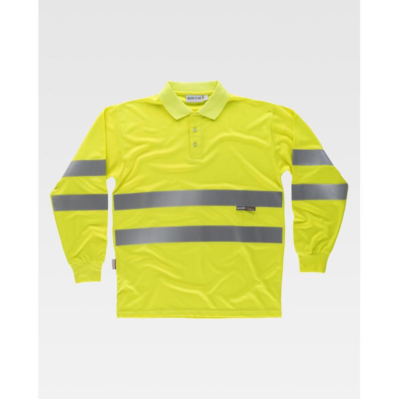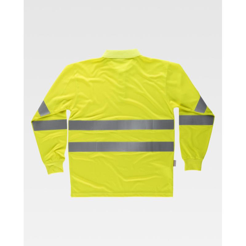 Polo de alta visibilidad de manga larga en poliéster ojo de perdiz con cintas reflectantes. Cuello clásico con tapeta de tres botones y cubrecosturas interior. Dos cintas reflectantes en pecho, espalda y mangas. Puño elástico. Tejido fresco y ligero de alta permeabilidad al aire. Transpirable, de fácil secado y resistente al encogimiento. Cuello y puños en punto canalé. Aberturas laterales. 100% Poliéster