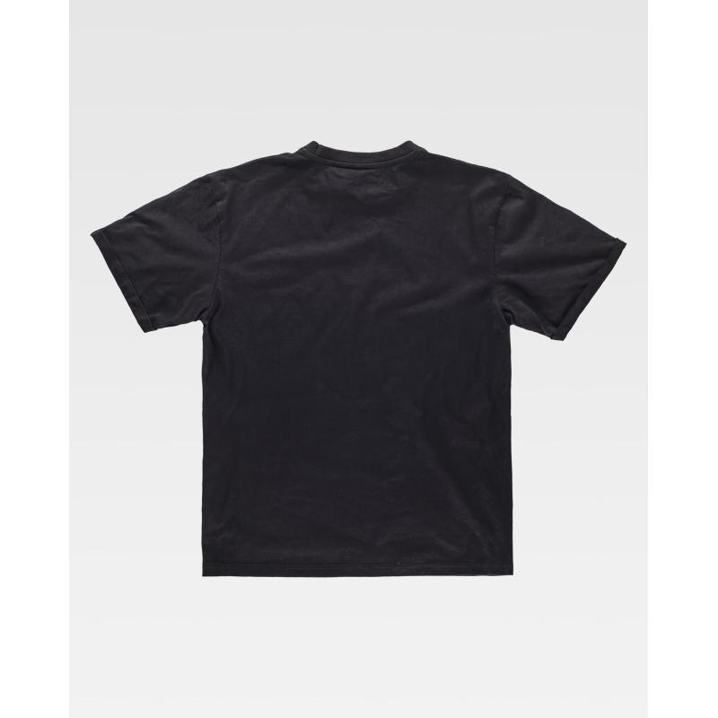 Camiseta clásica de manga corta en algodón con estampado en pecho. Cuello redondo en punto canalé. Cubrecosturas en el interior del cuello. Vuelta en la manga. 100% Algodón