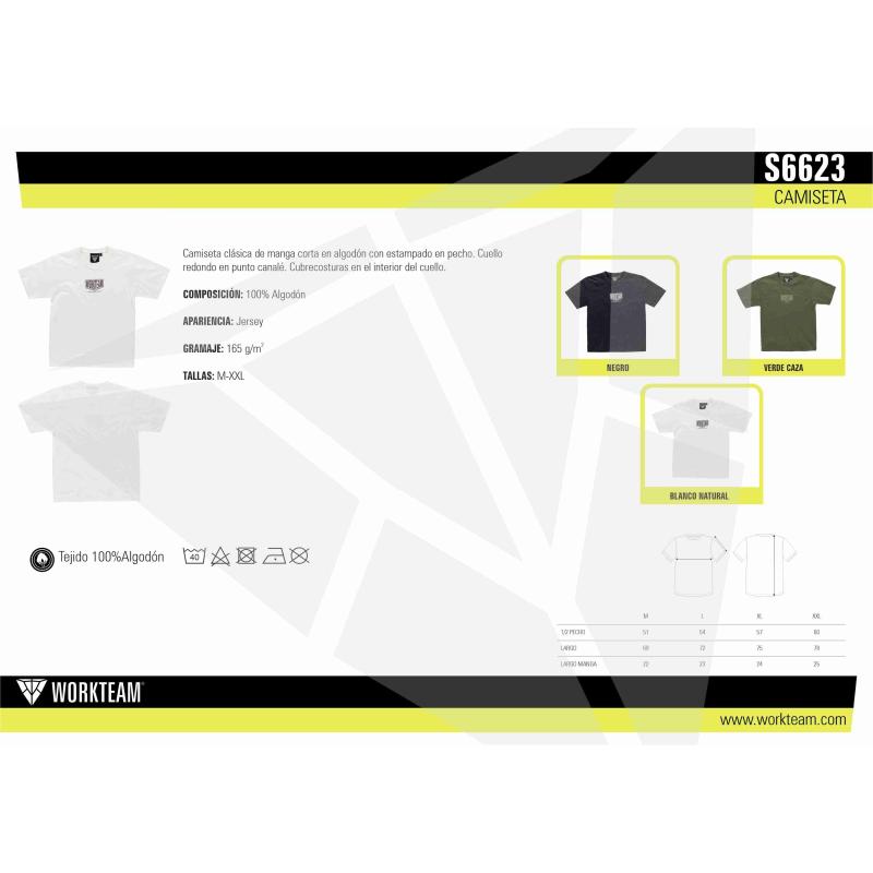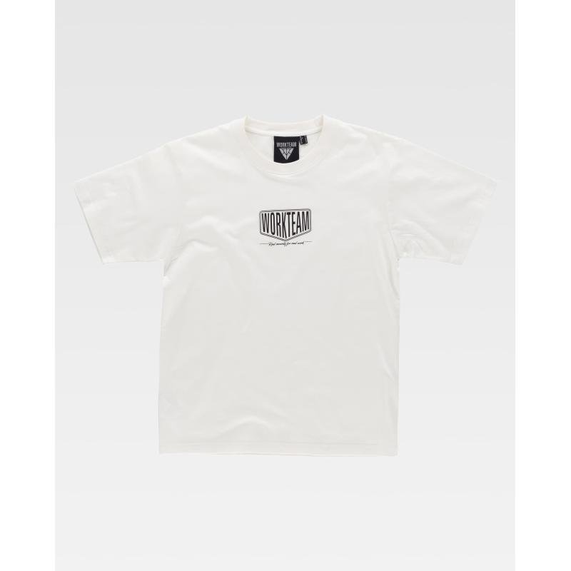 Camiseta clásica de manga corta en algodón con estampado en pecho. Cuello redondo en punto canalé. Cubrecosturas en el interior del cuello. 100% Algodón