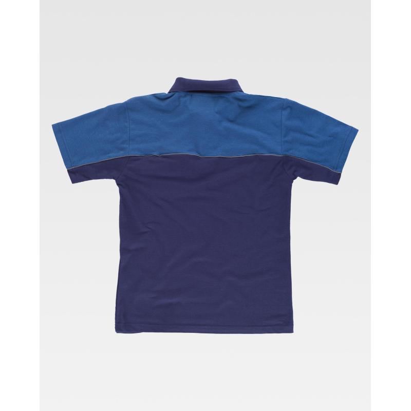 Polo combinado de manga corta en tejido piqué con vivos reflectantes. Cuello clásico con tapeta de dos botones y cubrecosturas interior. Canesús con vivos a contraste que continuan en la manga. Un bolso de pecho de ojal. Canesús, vista de bolsillo y pieza en mangas a contraste. Tejido fresco y poroso que permite una adecuada ventilación. Cuello en punto canalé. 65% Poliéster 35% Algodón