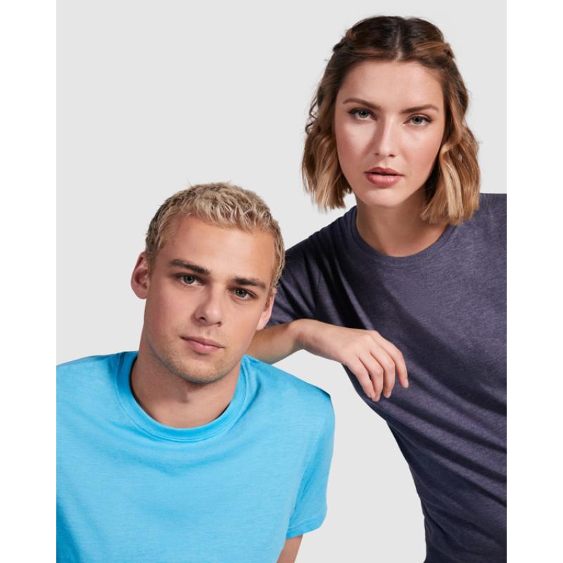 Camiseta de manga corta ligeramente entallada en cintura. Cuello redondo en canalé 1x1. Cubrecosturas en cuello del mismo tejido.