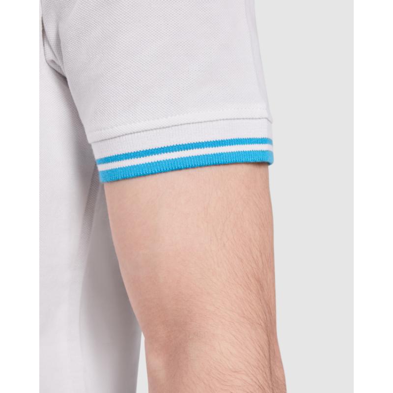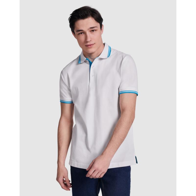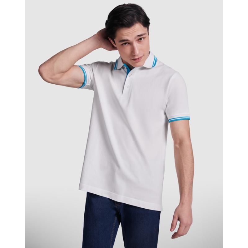 Polo de manga corta de algodón peinado. Punto piqué. Cuello y mangas tejidos 1x1 a contraste de color. Tapeta de 3 botones a contraste de color. Cubrecosturas en cuello del mismo tejido. Aperturas laterales en bajo.