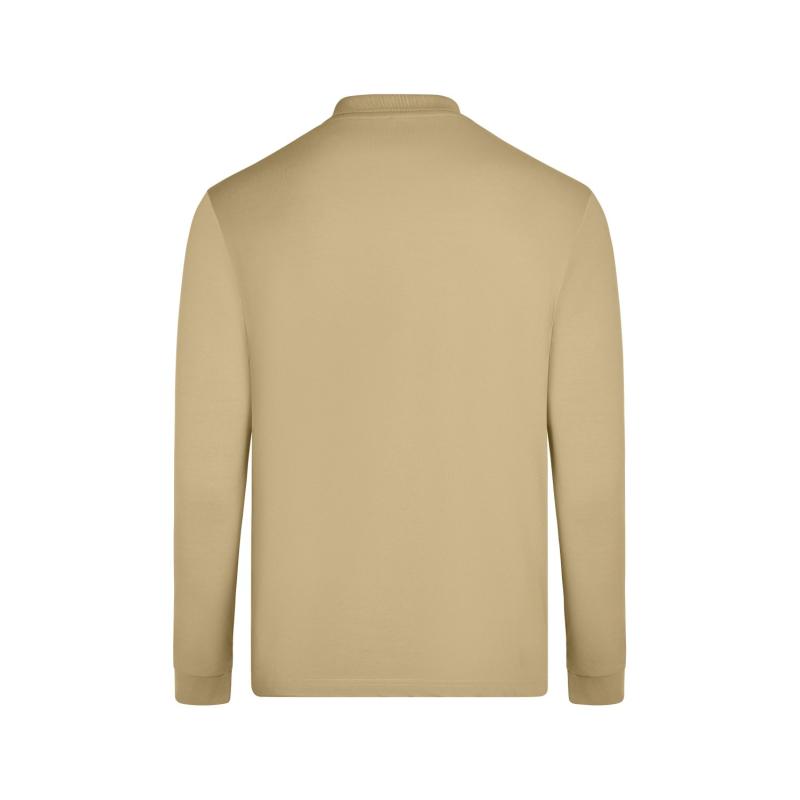 Polo UNISEX manga larga. Punto piqué. 35% Algodón RingSpun - 65% Poliéster. 210 g/m² Tapeta de 3 botones Cubrecosturas reforzado en el interior del cuello para evitar deformación Canalé 1x1 en cuello Puño con elastano para mayor elasticidad y evitar deformación Costuras laterales con aberturas inferiores Regular fit