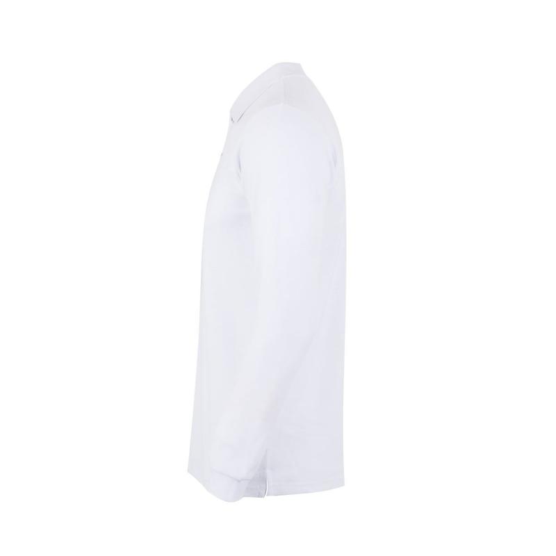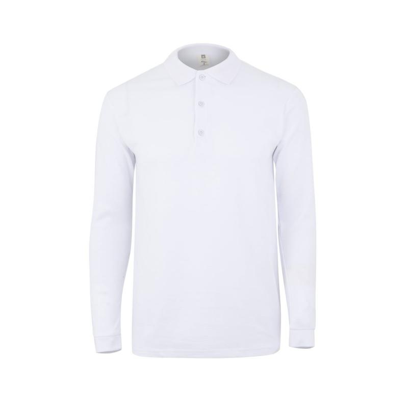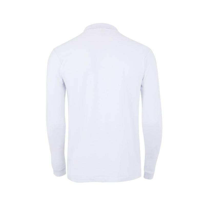 Polo UNISEX manga larga. Punto piqué. 35% Algodón RingSpun - 65% Poliéster. 210 g/m² Tapeta de 3 botones Cubrecosturas reforzado en el interior del cuello para evitar deformación Canalé 1x1 en cuello Puño con elastano para mayor elasticidad y evitar deformación Costuras laterales con aberturas inferiores Regular fit