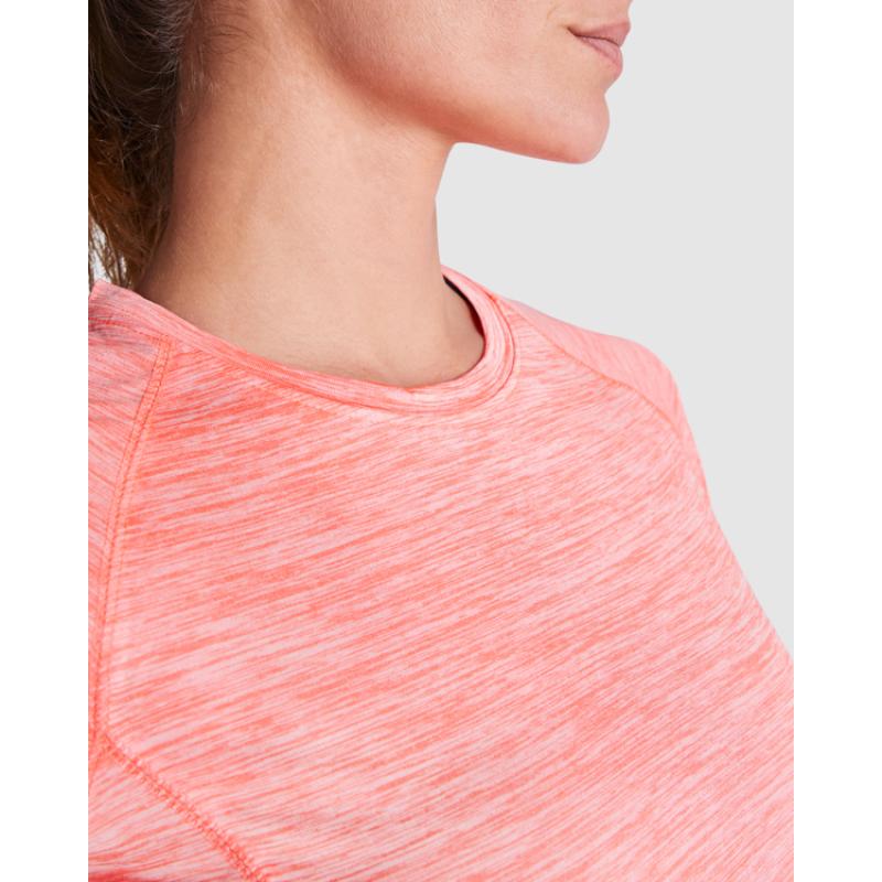 Camiseta técnica manga ranglan entallada transpirable. Paneles laterales con costuras anti roce. Cuello redondo y cubrecosturas del mismo tejido al tono.