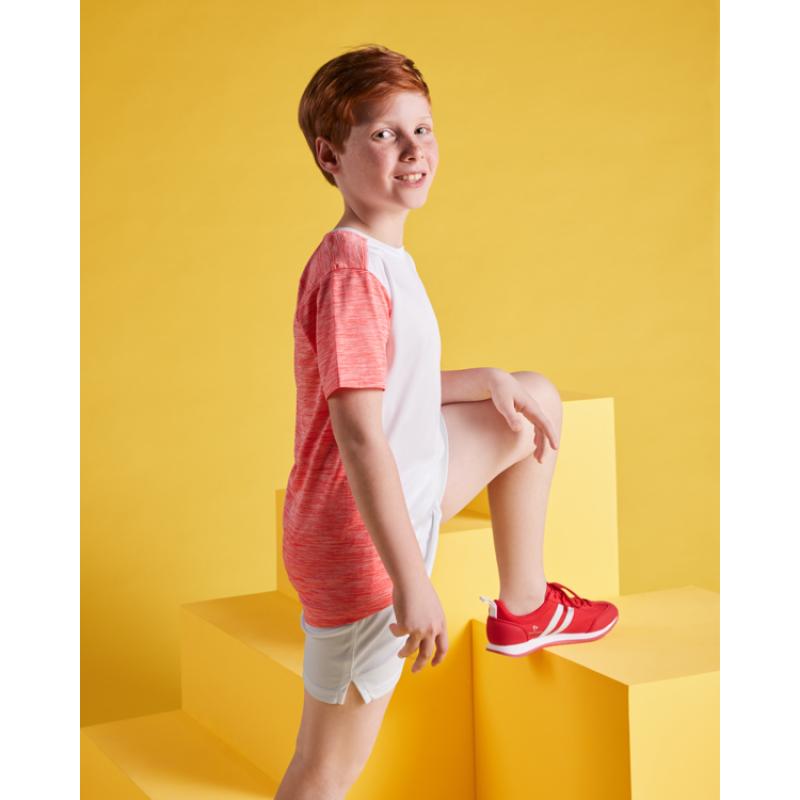 Tejido delantero: 100% poliéster bird´s eye. Tejido trasero: 100% poliéster space dye. 135 g/m².