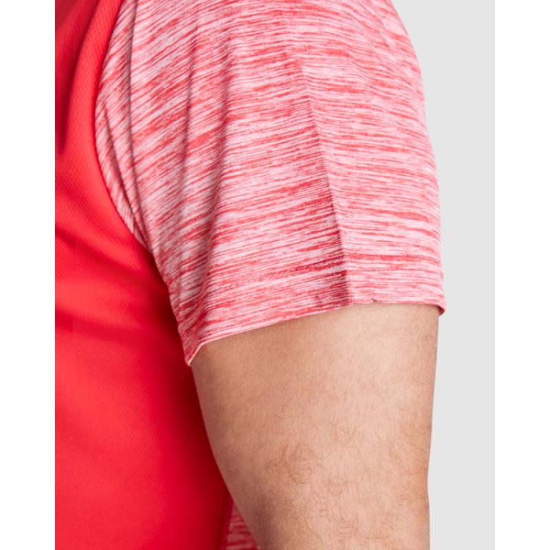 Camiseta técnica manga corta transpirable. Combinación de tejidos y colores. Costuras anti roce. Cuello redondo y cubrecosturas del mismo tejido al tono del frontal.