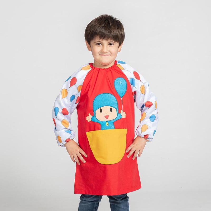 El babi POCOYO GLOBOS cuenta con mangas largas que incluyen elástico en el cuello y en los puños. Esto asegura un ajuste cómodo y ayuda a mantener las mangas en su lugar mientras los niños realizan sus actividades escolares.