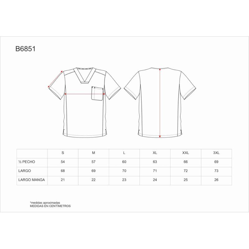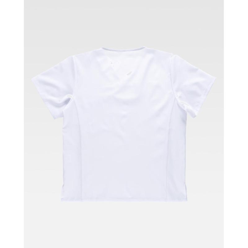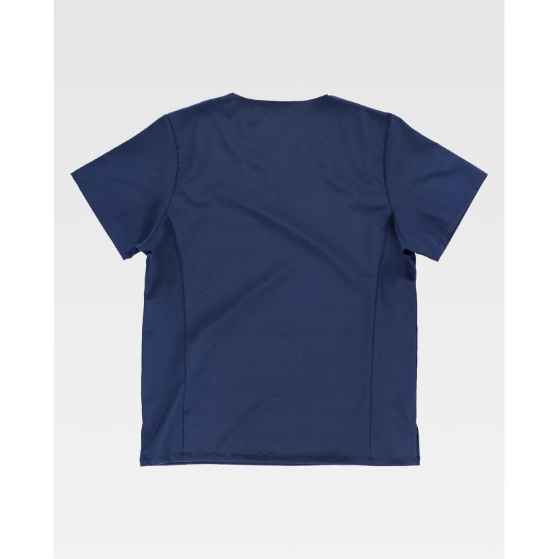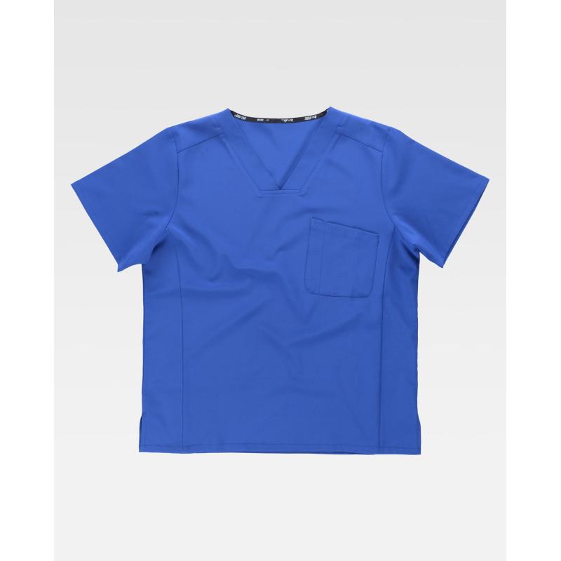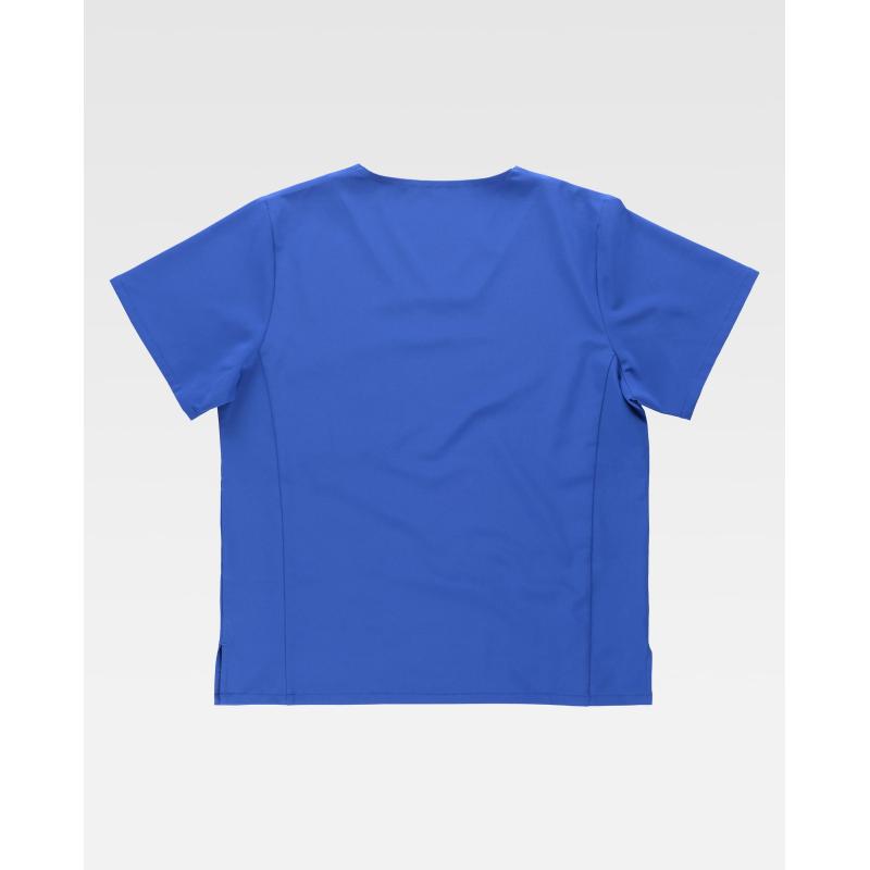 Casaca unisex de manga corta con tejido elástico. Cuello a pico. Un bolsillo en pecho de plastón. Un bolsillo para bolígrafos. Aberturas en los costados. 93% Poliéster 7% Elastano