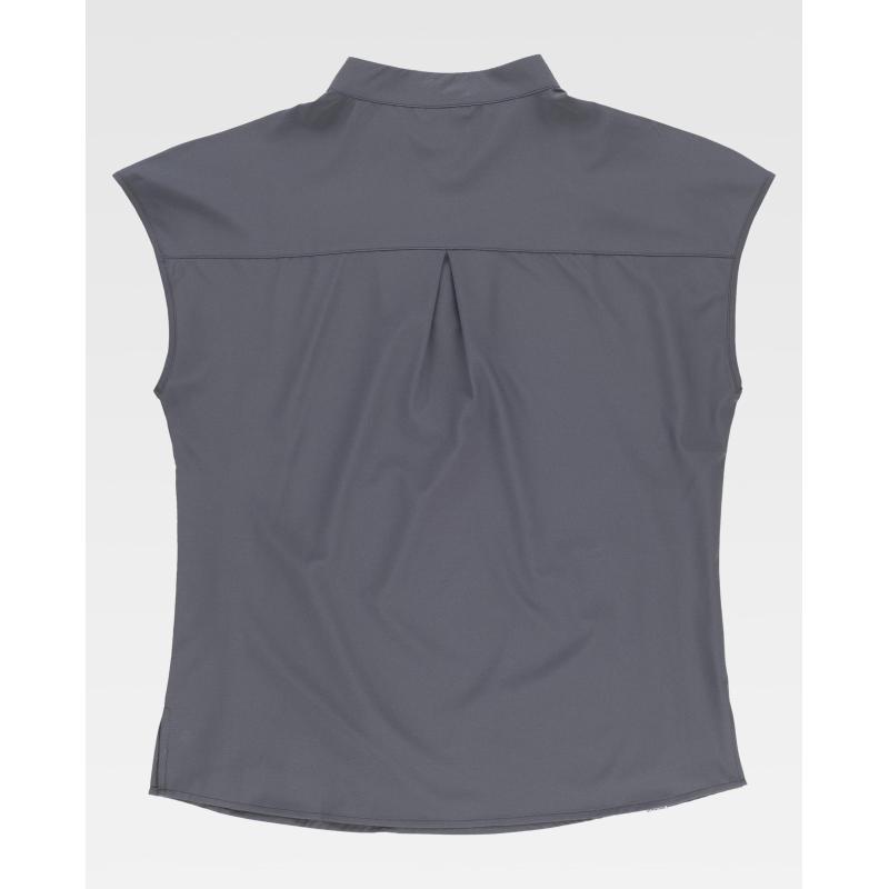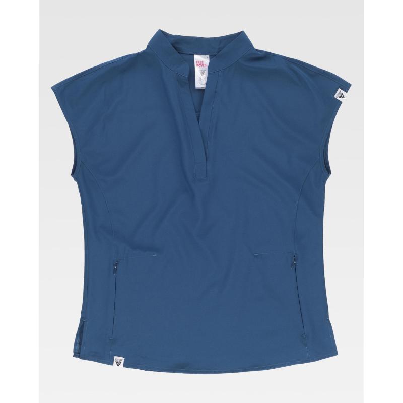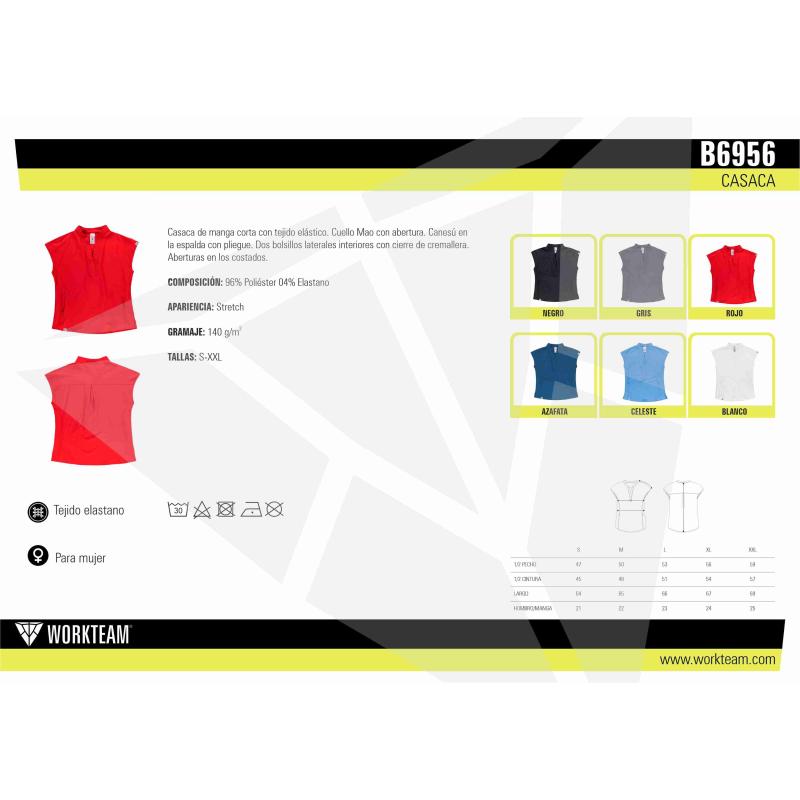 Casaca de manga corta con tejido elástico. Cuello Mao con abuertura. Canesú en la espalda con pliegue. Dos bolsillos laterales interiores con cierre de cremallera. Aberturas en los costados. 96% Poliéster 4% Elastano