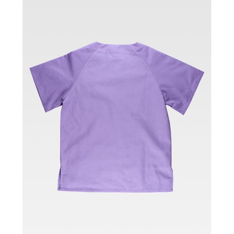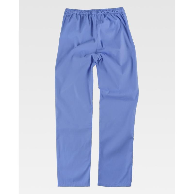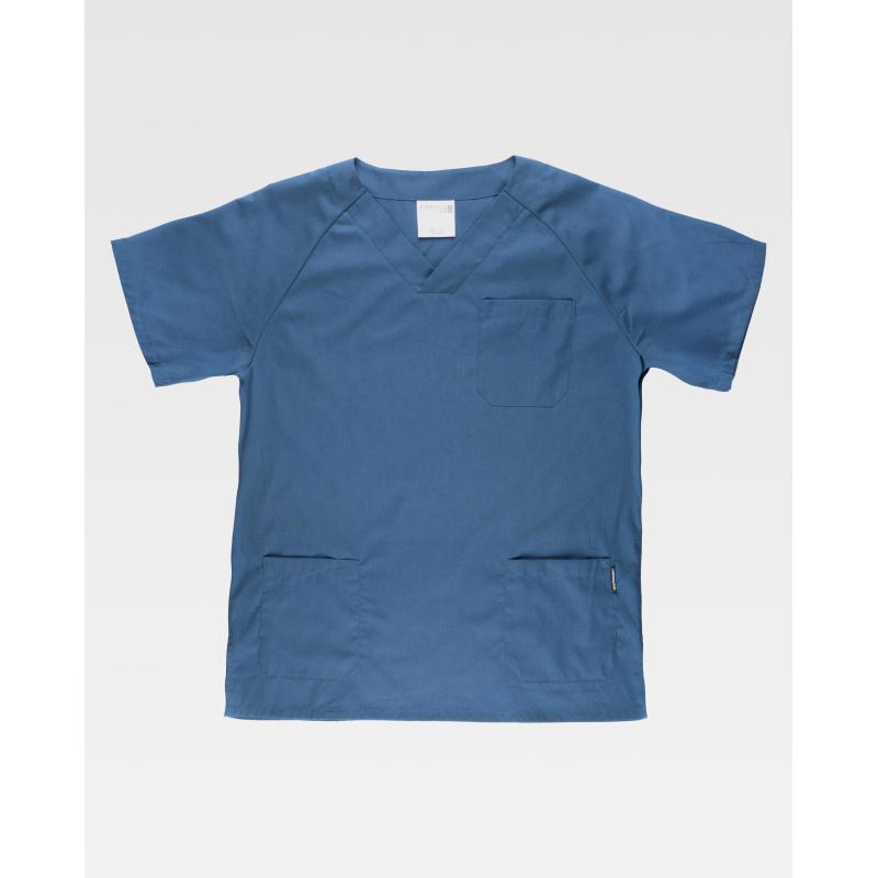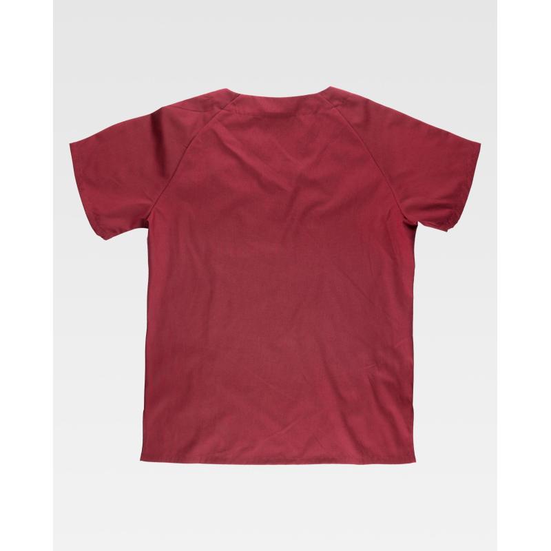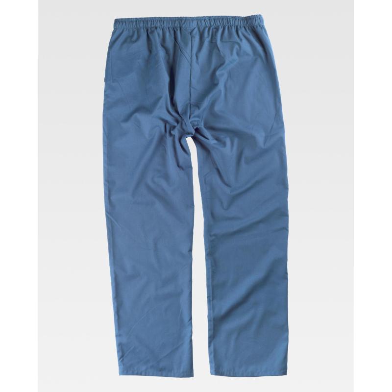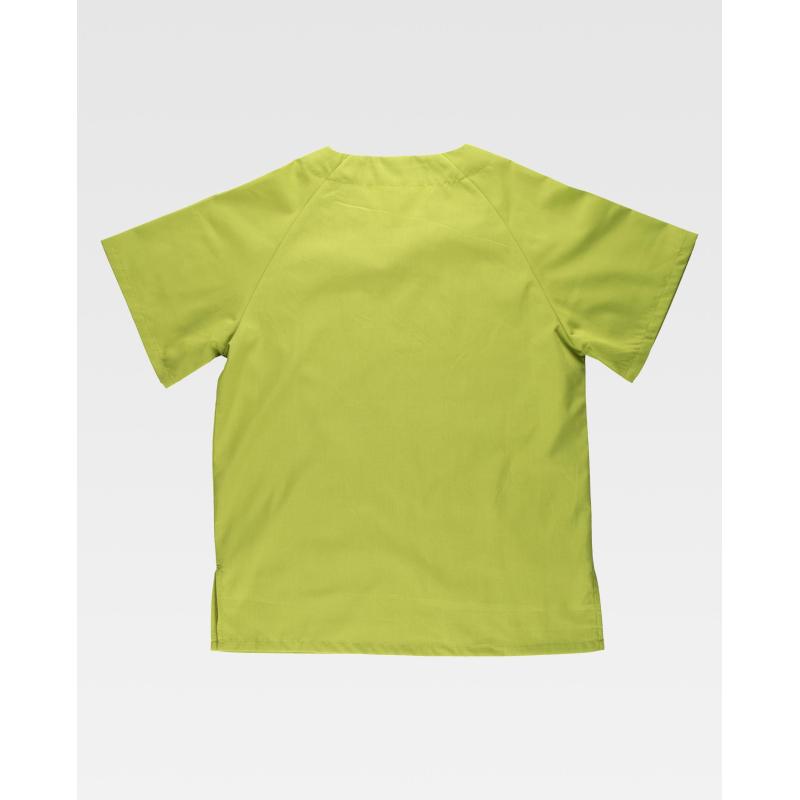 Conjunto unisex de casaca y pantalón: Casaca de manga corta. Cuello a pico. Aberturas laterales. Un bolsillo en pecho de plastón. Dos bolsillos laterales de plastón. Un bolsillo para bolígrafos. Pantalón con elástico y cordón en la cintura. Dos bolsillos laterales. 80% Poliéster 20% Algodón