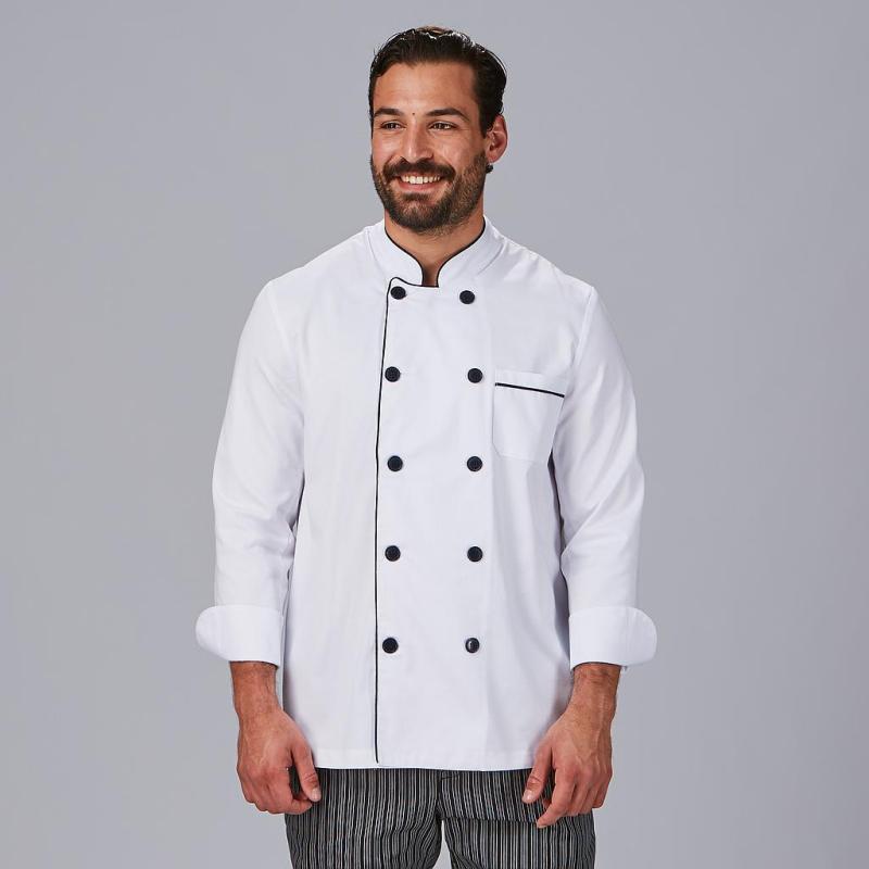 Esta chaqueta es unisex y cuenta con mangas largas, lo que la hace versátil y adecuada para profesionales de cualquier género que trabajan en la cocina. Las mangas largas brindan protección adicional y son ideales para entornos de trabajo con temperaturas variables.