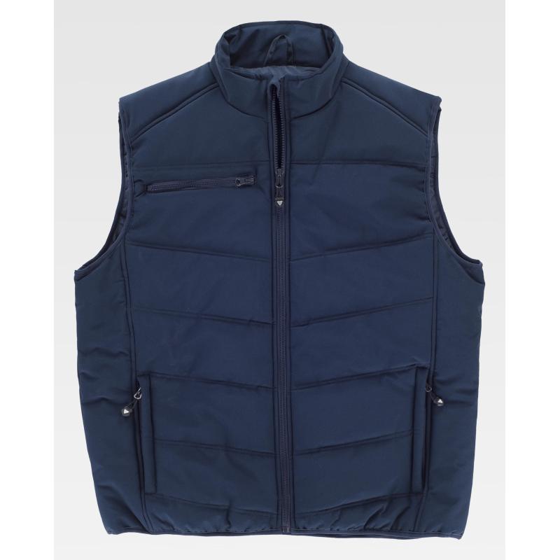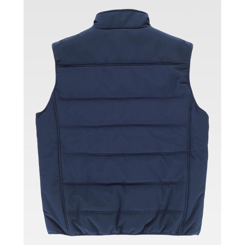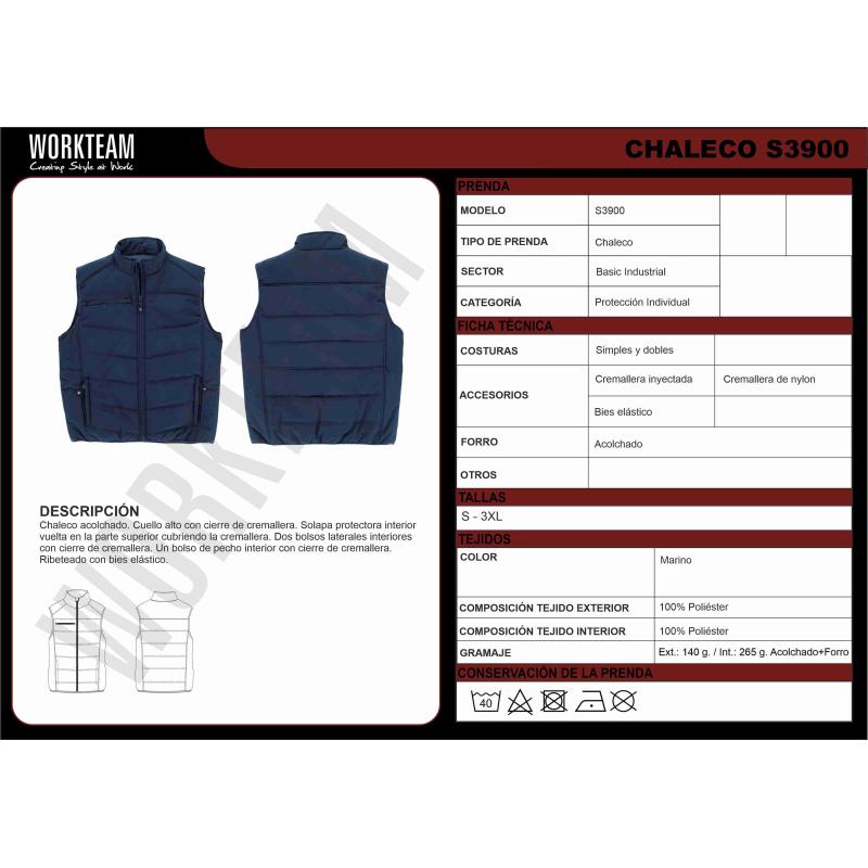 Chaleco acolchado. Cuello alto con cierre de cremallera. Solapa protectora interior vuelta en la parte superior cubriendo la cremallera. Dos bolsos laterales interiores con cierre de cremallera. Un bolso de pecho interior con cierre de cremallera. Ribeteado con bies elástico. 100% Poliéster