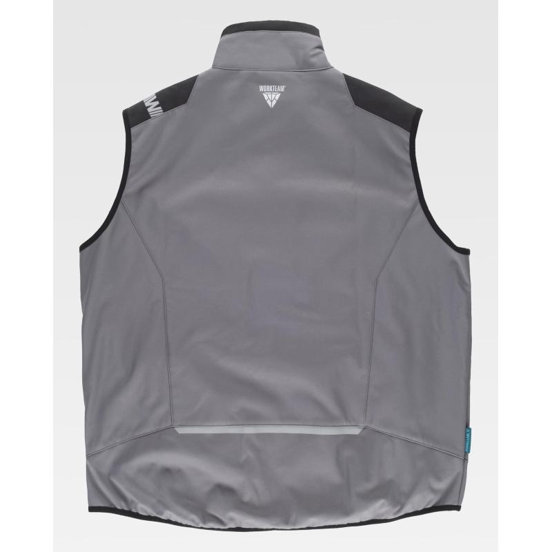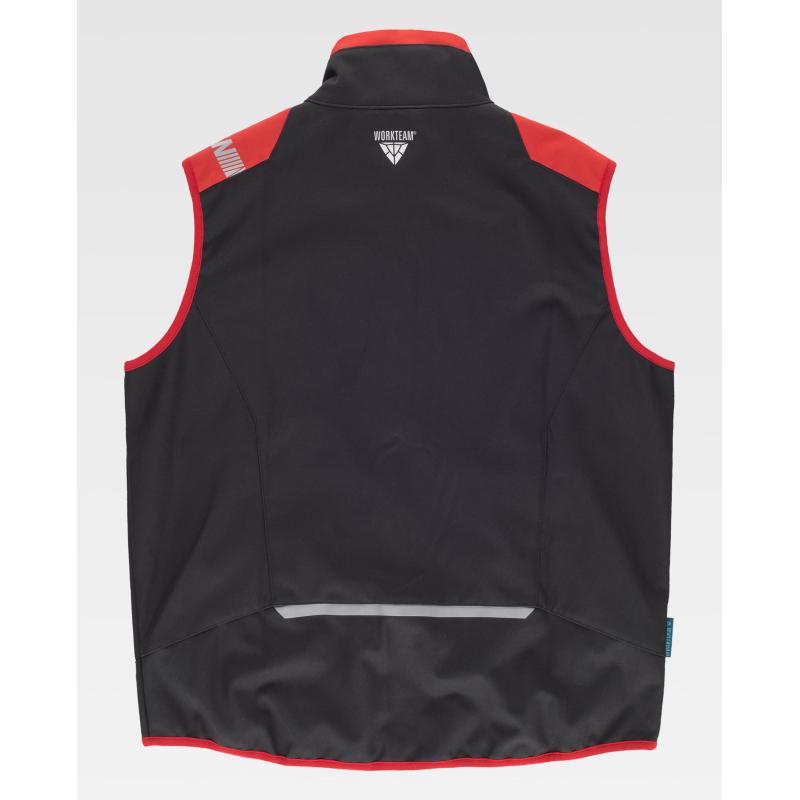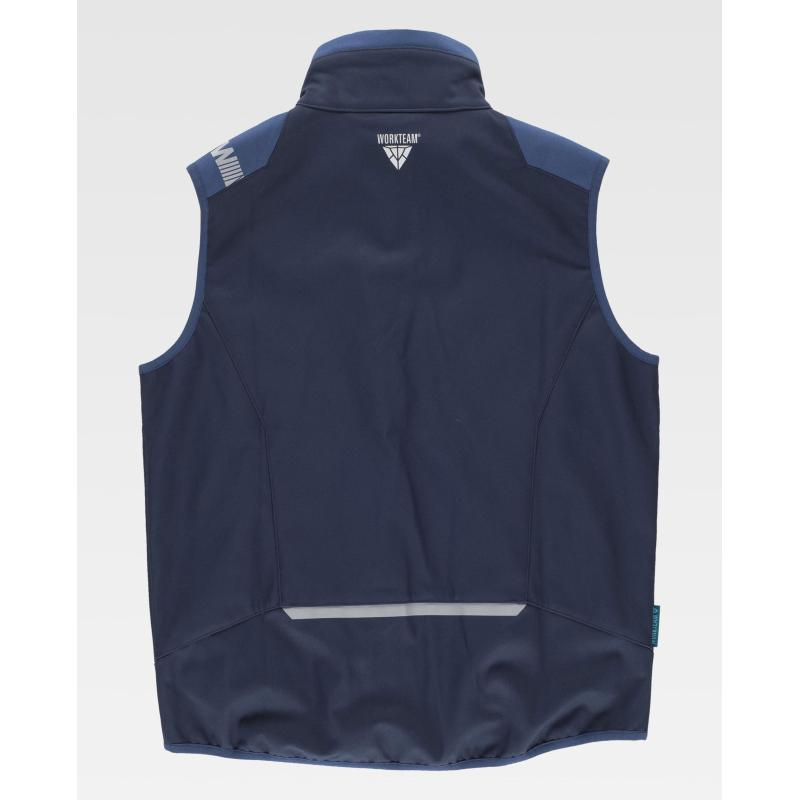 Chaleco Workshell combinado. Cuello alto y cierre de cremallera de nylon. Solapa protectora interior vuelta en la parte superior cubriendo la cremallera. Dos bolsos laterales interiores con cierre de cremallera. Cortes decorativos, detalles reflectantes y cremalleras de cierre invertido. Cinta reflectante decorativa personalizada en hombro. Ribeteado con bies elástico a contraste. Tejido corta vientos, repelente al agua y resistente al desgarro con membrana interior transpirable y aislante e interior de alta capacidad térmica. Con forro de rejilla en delantero. 100% Poliéster