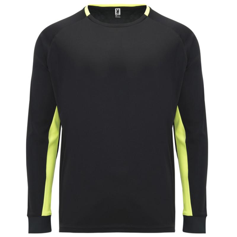 Camiseta manga larga ranglan transpirable. Paneles a contraste de color en el interior de las mangas. Detalle a contraste de color en cuello. Coderas acolchadas. Puños en rib 1x1.