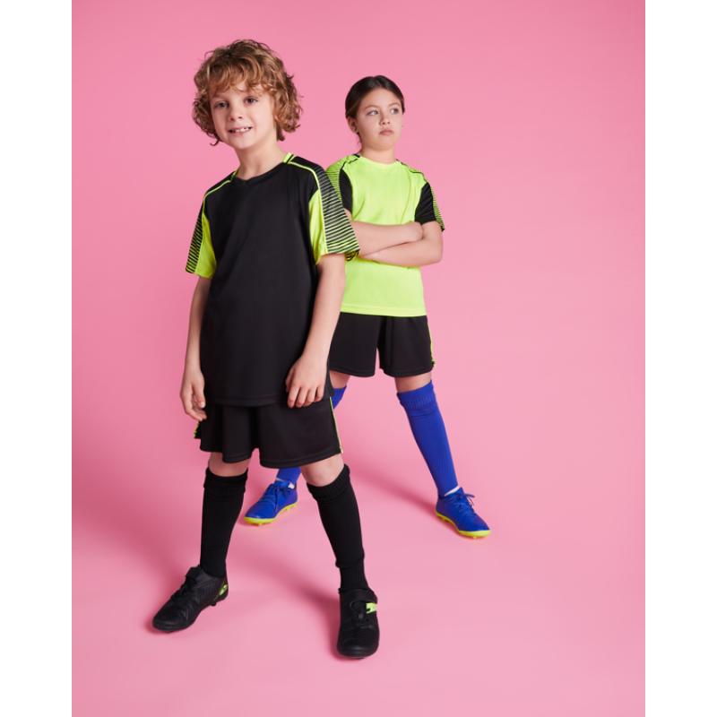 Conjunto deportivo unisex de dos camisetas y un pantalón transpirable. Camisetas con piezas en hombro sublimadas. Detalle cuello ribeteado en la parte posterior. Cubrecosturas en el cuello. Pantalón con cintura engomada y cordón de ajuste. Vivos a contraste de color. Aperturas laterales.