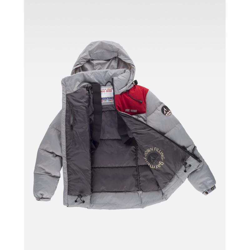 Parka combinada SÄLW de mujer con pluma reciclada 80:20 que asegura la regulación del calor corporal. Realizada en tejido antidesgarro Ripstop reciclado. Cuello con capucha en el interior y elástico ajustable. Tratamiento de repelencia al agua y cremalleras impermeables. Cierre de cremallera con doble tirador y protector de barbilla. Vista completa cubre cremallera en el interior. Dos bolsos laterales interiores con cremallera ocultos por solapa. Bajo con elástico ajustable. Puños ajustables con botones a presión. Cuenta en su interior con tirantes elásticos para que puedas quitarla sin necesidad de quitarte tu mochila. Logos estampados en pecho y cuello. Detalles estampados en el interior. Poder calorífico: 550+. Ayuda a favorecer un entorno más sostenible cuidando el medio ambiente y las prácticas de producción textiles, así como a garantizar su durabilidad y resistencia, protegiéndote, además, de la lluvia ligera. Cómoda, versátil e insignia de la más clásica versión del plumas Roc·Neige. Exterior: 100% Nylon reciclado. Relleno: 100% Pluma de pato reciclada. Forro: 100% Poliéster.