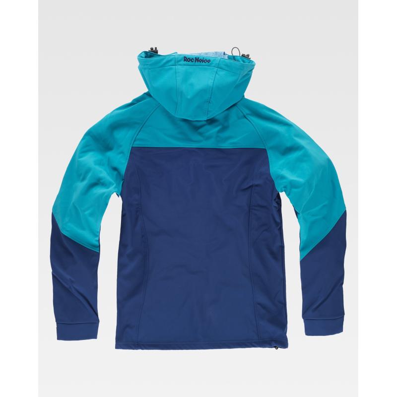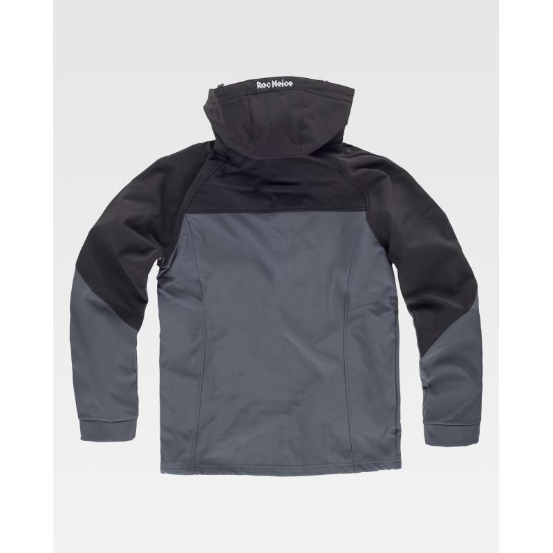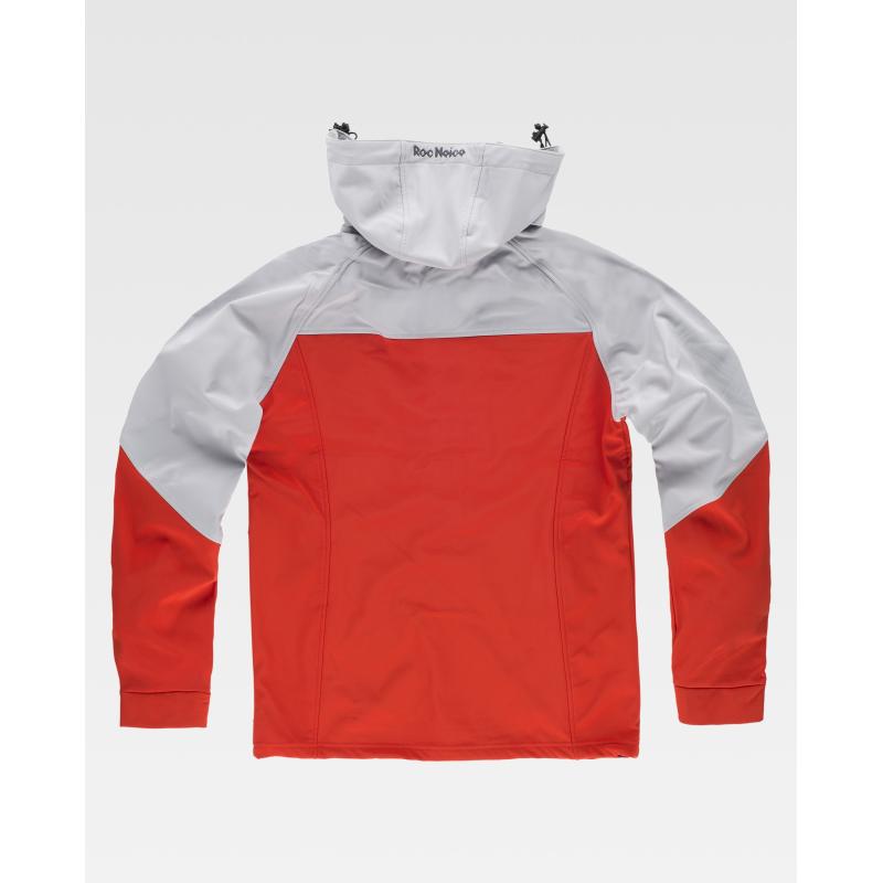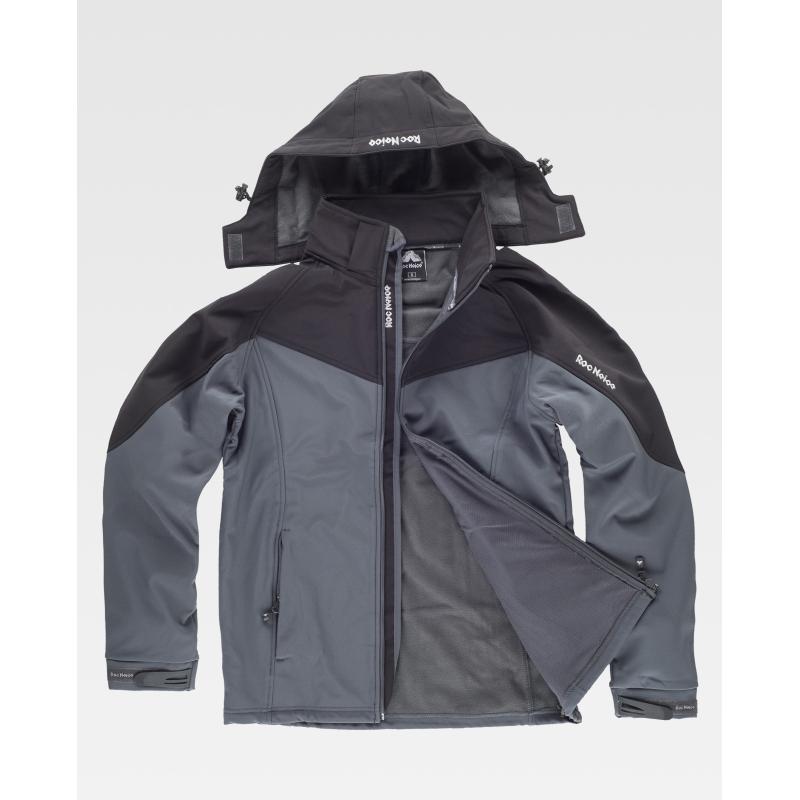 Softshell combinado. Capucha desmontable con elástico ajustable. Vista completa cubre cremallera en el interior. Cuello alto con cinta personalizada cubrecosturas en el interior. Cierre de cremallera y protector de barbilla. Bajo con elástico ajustable. Puños con cierre ajustable de velcro personalizado y reflectante. Dos bolsillos laterales con cierre de cremallera. Logos bordados en la vista interior de la cremallera, en manga y capucha. Interior polar forrado con rejilla en la parte delantera. El revestimiento técnico impide que el agua penetre, a la vez que permite la transpiración. Ajuste en capucha, bajo y puños para aumentar la protección. 96% Poliéster 4% Elastano