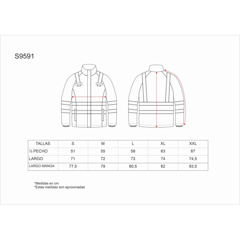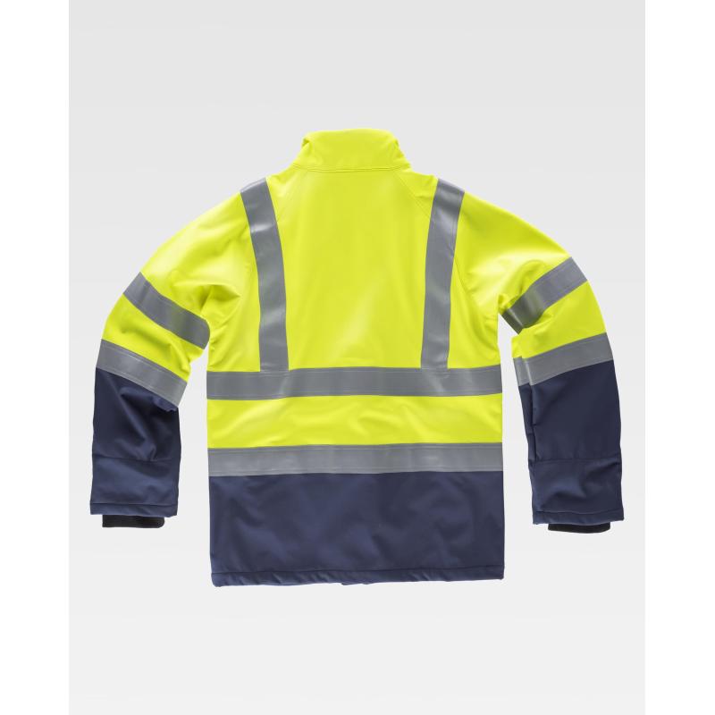 Workshell ignífuga, antiestática con protección para soldadura, arco eléctrico y contra productos químicos, de alta visibilidad con cintas reflectantes. Cuello alto con interior combinado y cierre de cremallera de metal y corchetes ocultos por solapa postiza. Dos bolsos laterales de ojal con solapas de seguridad y cierre de corchete. Una cinta reflectante ignífuga en hombros y dos en pecho, espalda y mangas. Manga ranglan y puño elástico en el interior de la manga. Dos trabillas en pecho. Tejido corta vientos, repelente al agua y resistente al desgarro con membrana interior transpirable y aislante e interior de alta capacidad térmica. Ext: 100% Poliéster+FR PU. Int: 50% Modacrílico 30% Algodón 19% Poliéster 1% Fibra antiestática