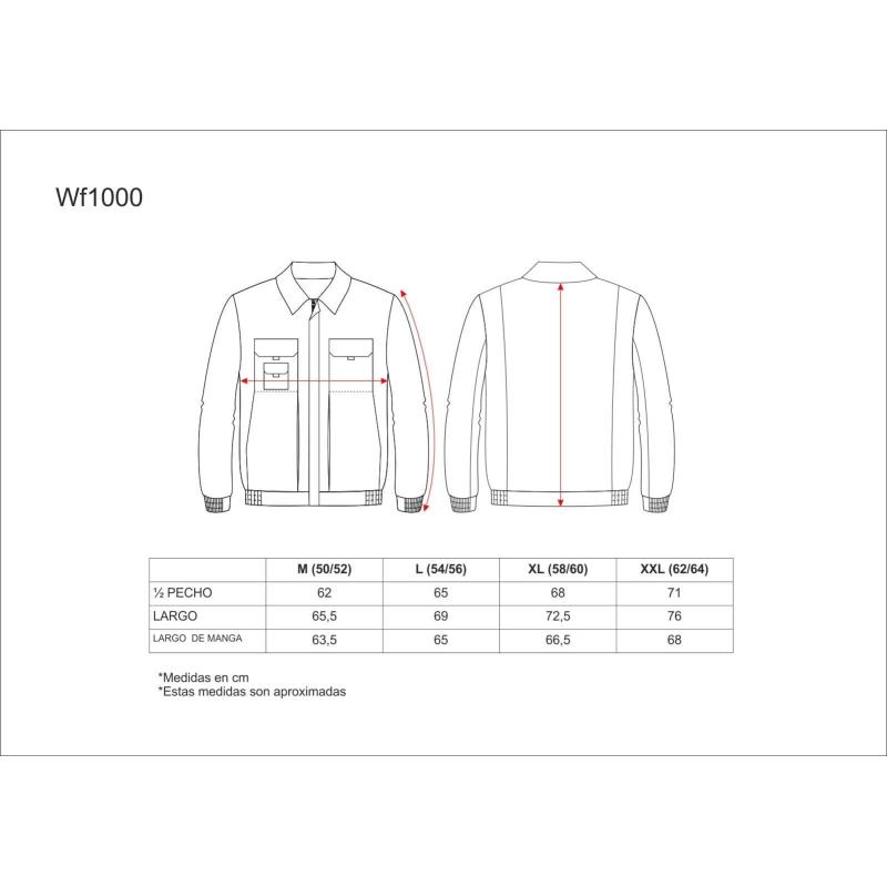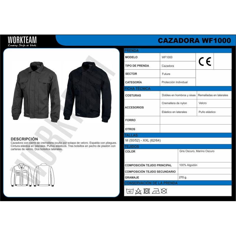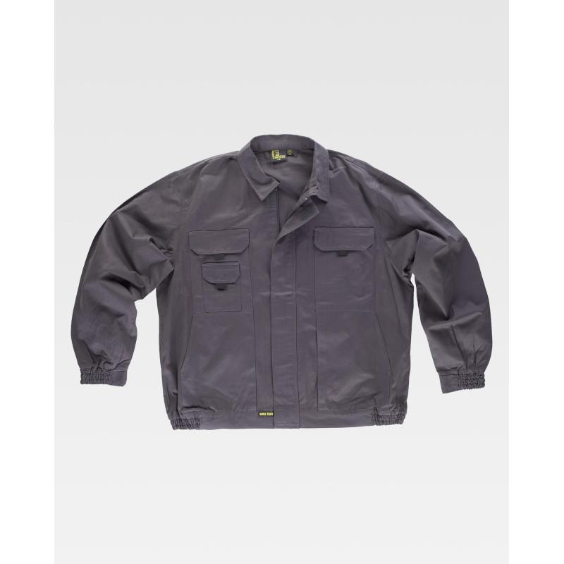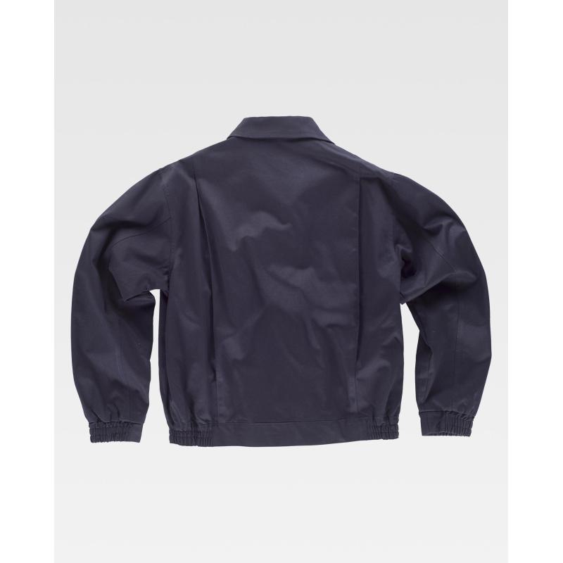 Cazadora de algodón. Cuello camisero y cierre de cremallera de nylon oculta por solapa postiza con velcro. Dos bolsos de pecho de plastón con bolsillo auxiliar superpuesto, todos con cartera de velcro y tiradores. Dos bolsos laterales de abertura inclinada con fuelle. Puño con elástico. Espalda con pliegues. Cierre de velcro en cintura y elástico en los laterales. 100% Algodón
