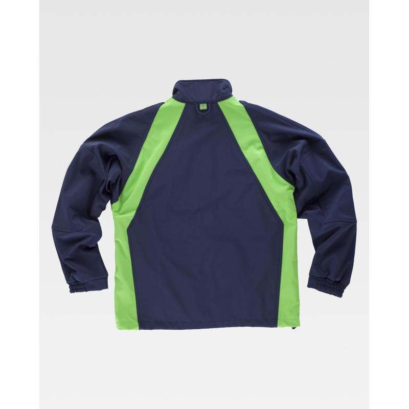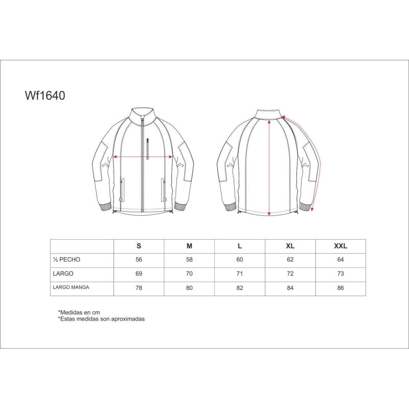 Chaqueta Workshell combinada. Cuello alto y cierre de cremallera. Solapa protectora interior vuelta en la parte superior cubriendo la cremallera. Un bolso de pecho y dos laterales interiores con cremallera. Manga ranglan con coderas reforzadas. Puño con elástico. Cordón elástico con pieza ajustable en el bajo. Detalles fluorescente-reflectantes. Tejido corta vientos, repelente al agua y resistente al desgarro con membrana interior transpirable y aislante e interior de alta capacidad térmica. 96% Poliéster 4% Elastano.