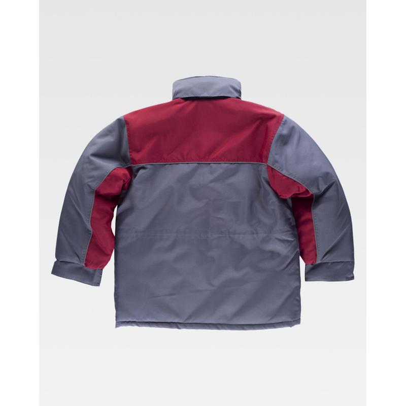 Parka acolchada en tejido Oxford combinada y con vivos reflectantes. Cuello alto y capucha interior ajustable con cordón. Canesús con vivos a contraste que continuan en la manga. Cierre de cremallera de doble tirador oculta por solapa postiza con velcro. Dos bolsos de pecho y dos bolsos laterales, todos de fuelle con cartera de velcro. Un bolso de pecho de plastón con cierre de velcro en el interior. Puño ajustable con velcro. Cordón elástico interior con pieza ajustable en cintura. 100% Poliéster