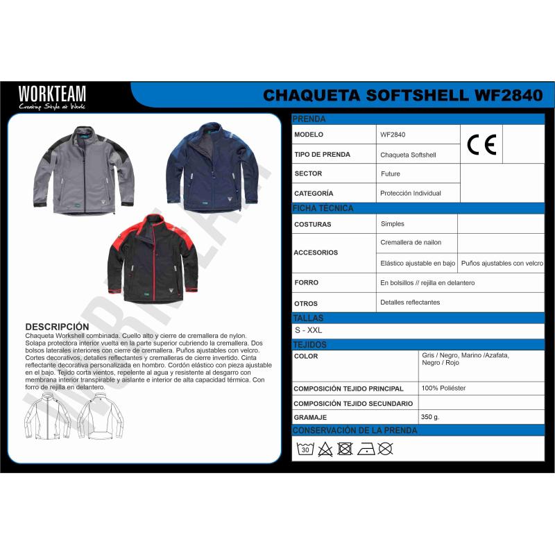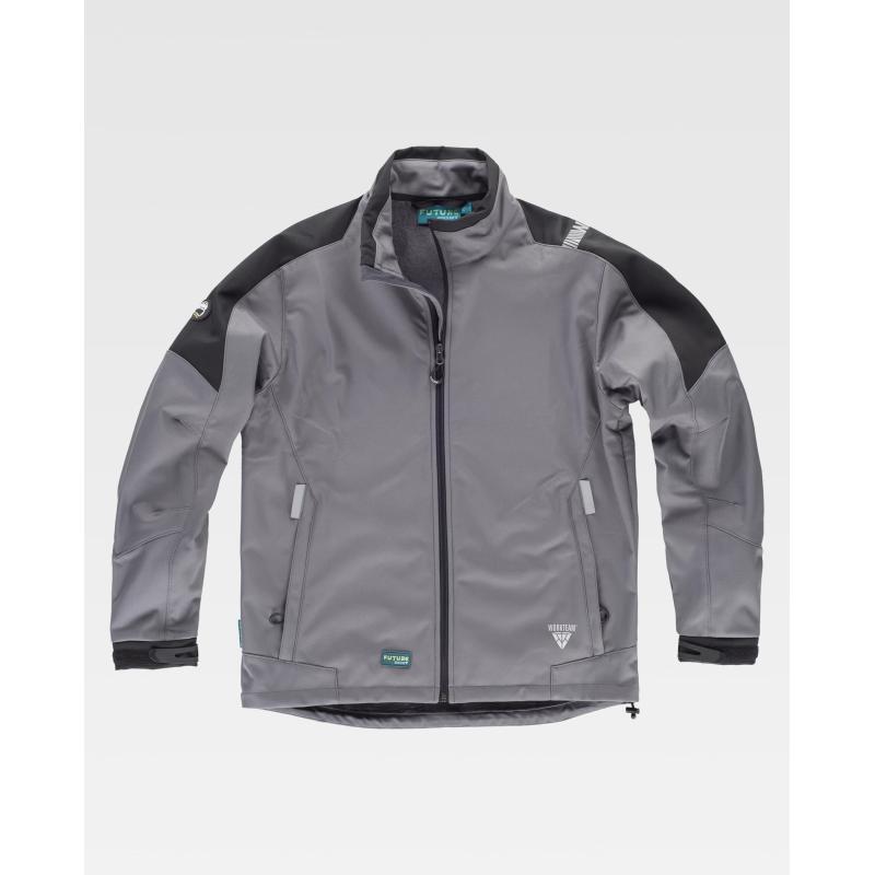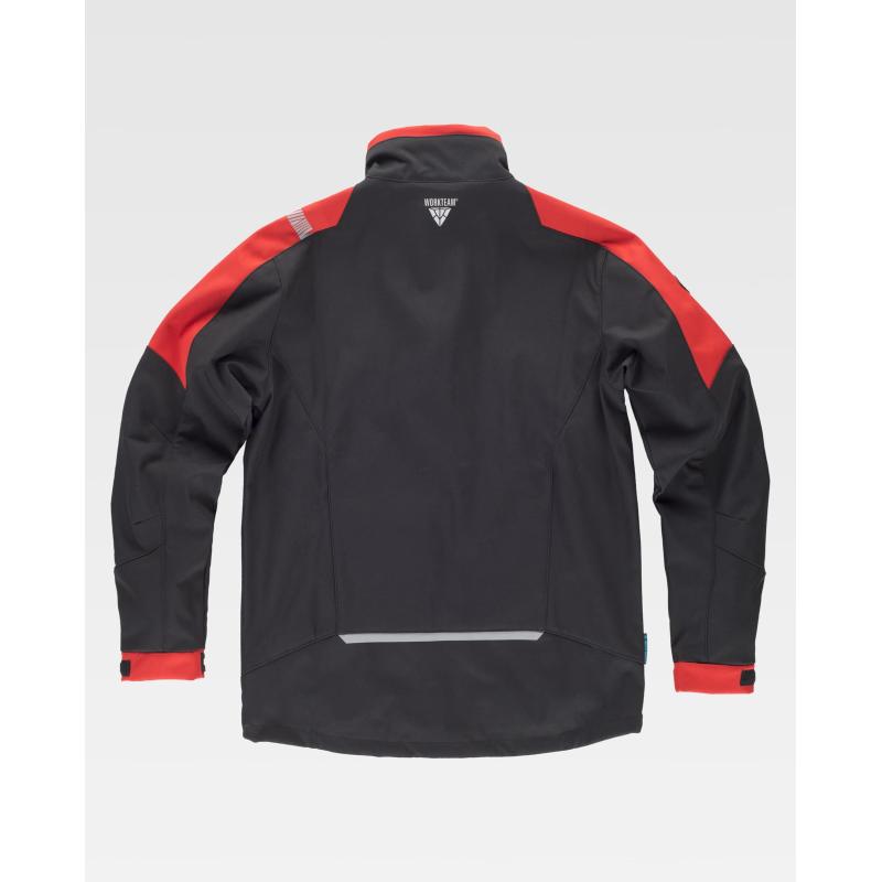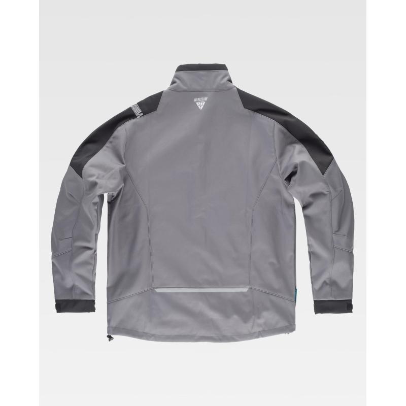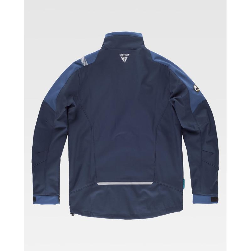 Workshell combinada. Cuello alto y cierre de cremallera de nylon. Solapa protectora interior vuelta en la parte superior cubriendo la cremallera. Dos bolsos laterales interiores con cierre de cremallera. Puños ajustables con velcro. Cortes decorativos, detalles reflectantes y cremalleras de cierre invertido. Cinta reflectante decorativa personalizada en hombro. Cordón elástico con pieza ajustable en el bajo. Tejido corta vientos, repelente al agua y resistente al desgarro con membrana interior transpirable y aislante e interior de alta capacidad térmica. Con forro de rejilla en delantero. 100% Poliéster