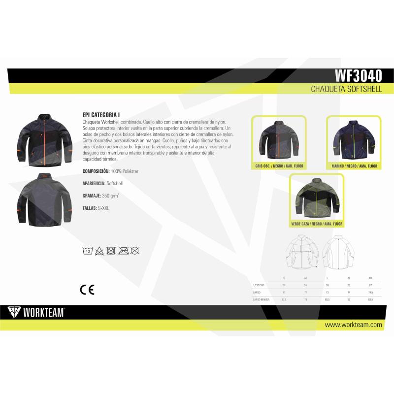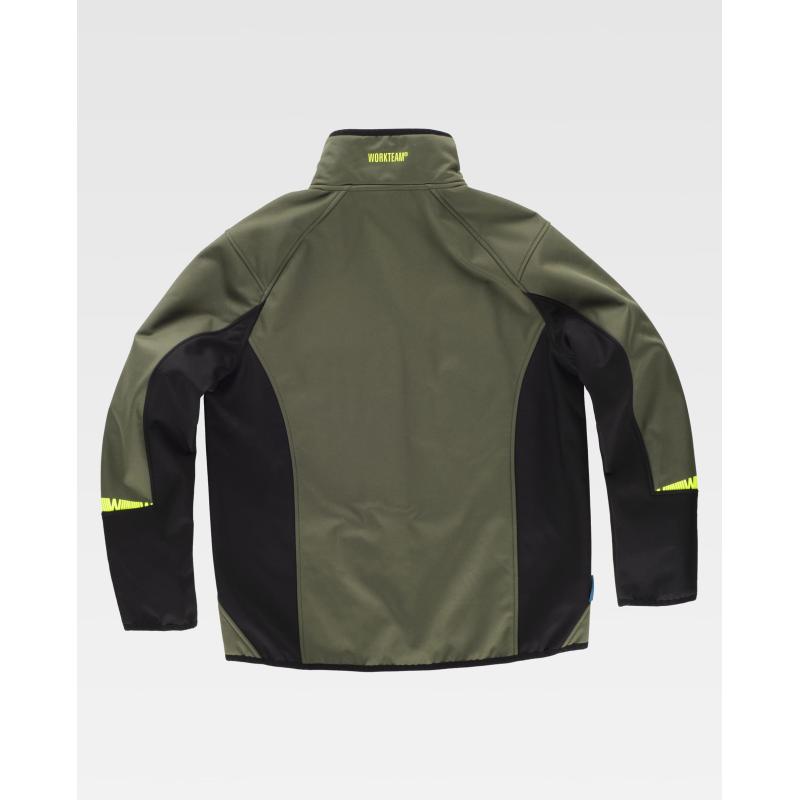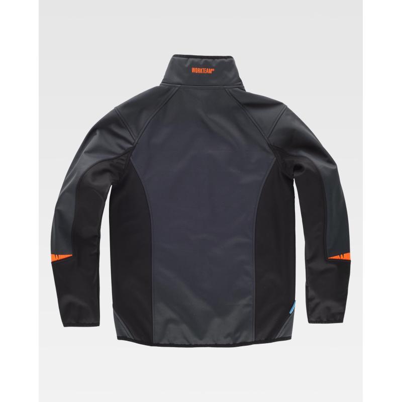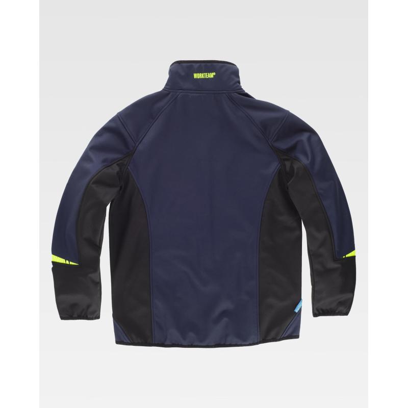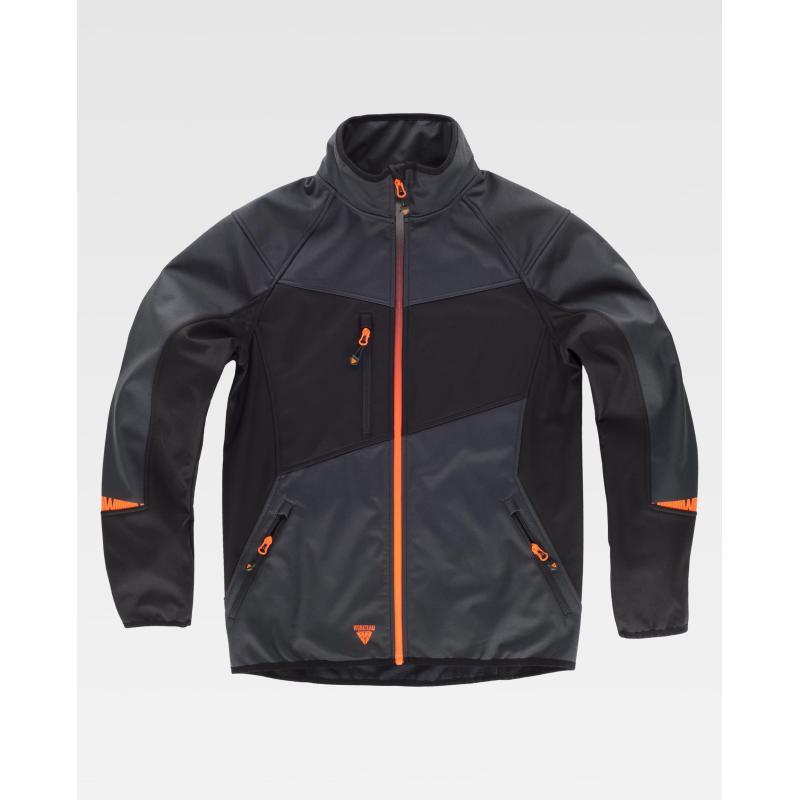Workshell combinada. Cuello alto con cierre de cremallera de nylon. Solapa protectora interior vuelta en la parte superior cubriendo la cremallera. Un bolso de pecho y dos bolsos laterales interiores con cierre de cremallera de nylon. Cinta decorativa personalizada en mangas. Cuello, puños y bajo ribeteados con bies elástico personalizado. Tejido corta vientos, repelente al agua y resistente al desgarro con membrana interior transpirable y aislante e interior de alta capacidad térmica. 100% Poliéster