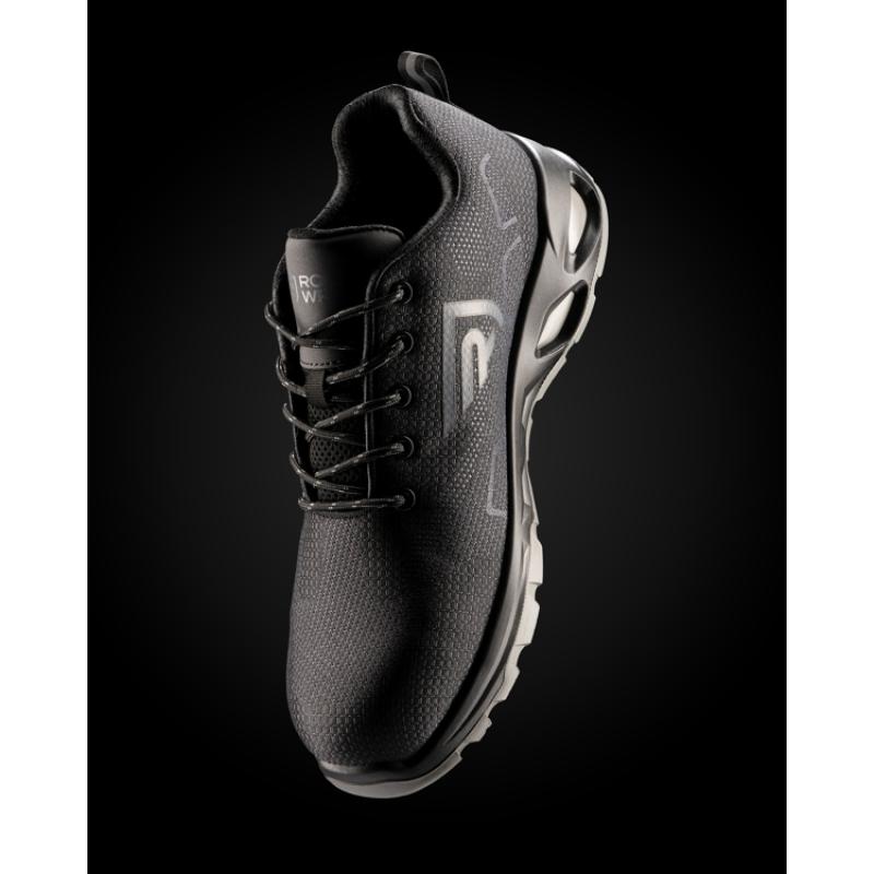 Cómodo calzado laboral de estilo deportivo con detalles reflectantes y transpirables.· Puntera: Fibra de vidrio, 200 julios.· Plantilla antiperforación: Textil fibras entrelazadas PS, 3mm.· Suela: Poliuretano de doble densidad· Cierre: Cordones· Refuerzo: Talón· Corte textil: Tatín