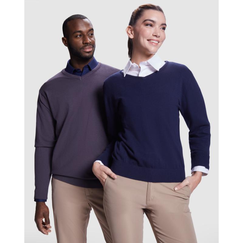 Jersey mujer con escote de pico.· Punto fino.· Puños y bajo en punto canalé 1x1.