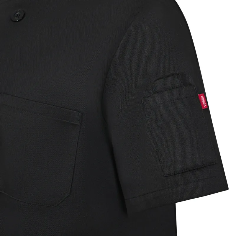 Dos bolsillos: 1 bolsillo de parche en el pecho, 1 bolsillo en la manga izquierda con compartimiento