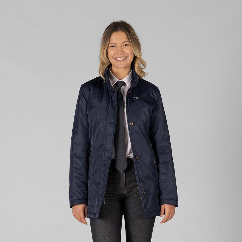 La parka presenta un diseño ajustado que se adapta cómodamente al cuerpo. Con una longitud de aproximadamente 80 cm, ofrece una cobertura adecuada y un aspecto profesional.