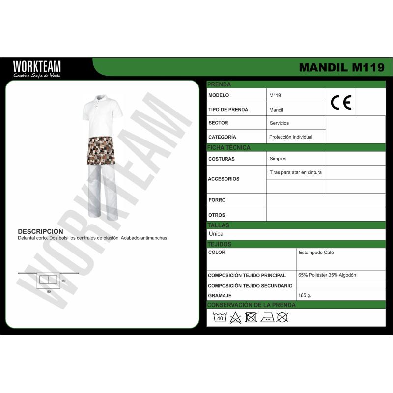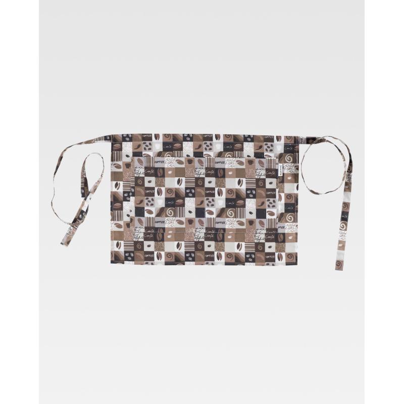 Delantal francés corto estampado. Un bolso central compartimentado. Tiras para ajustar en la cintura. Acabado antimanchas. 50X35 cm. 65% Poliéster 35% Algodón